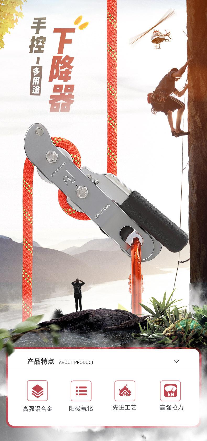 Descensor manual Xinda Outdoor Stop para escalada en roca al aire libre, equipo de salvamento, protección, desgarrador, equipo de montañismo.