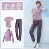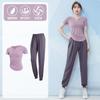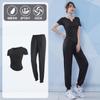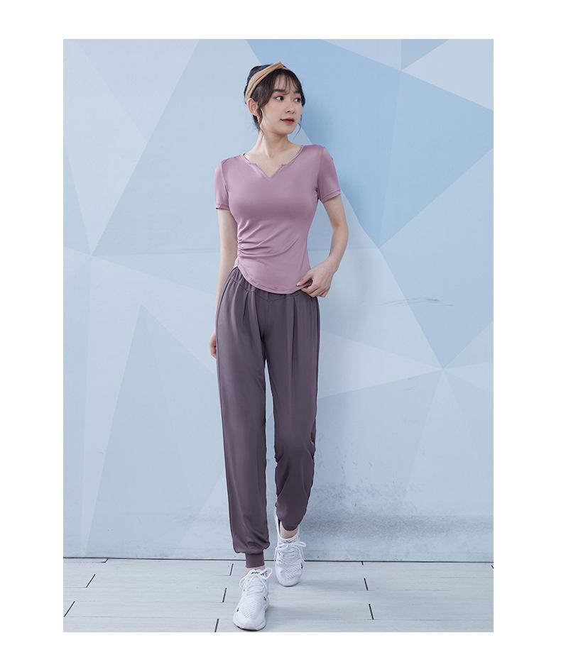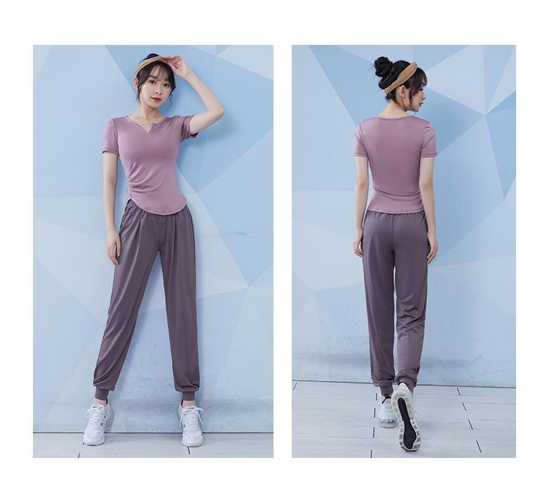 Traje de ropa de yoga para mujer, moda de verano, sexy, top con cuello en V pequeño, corte ajustado, adelgazante, ropa de yoga, ropa deportiva para entrenamiento y correr