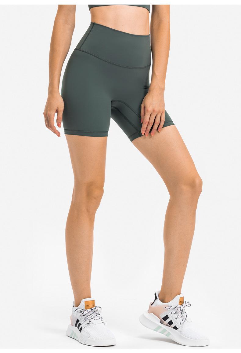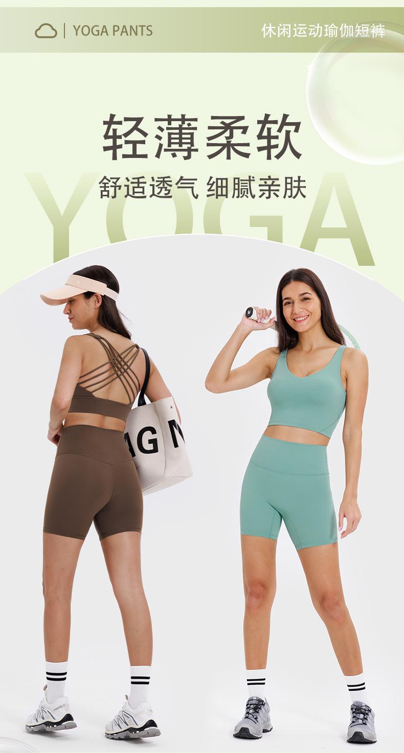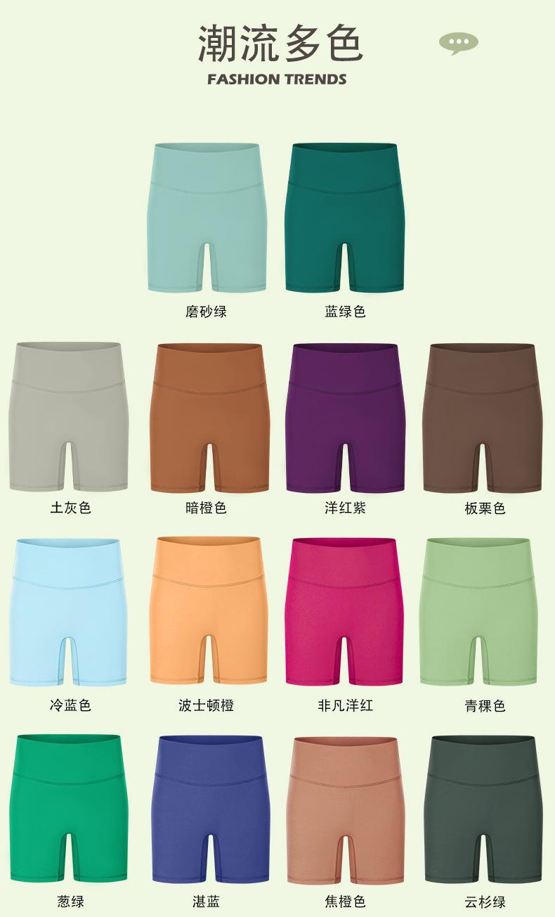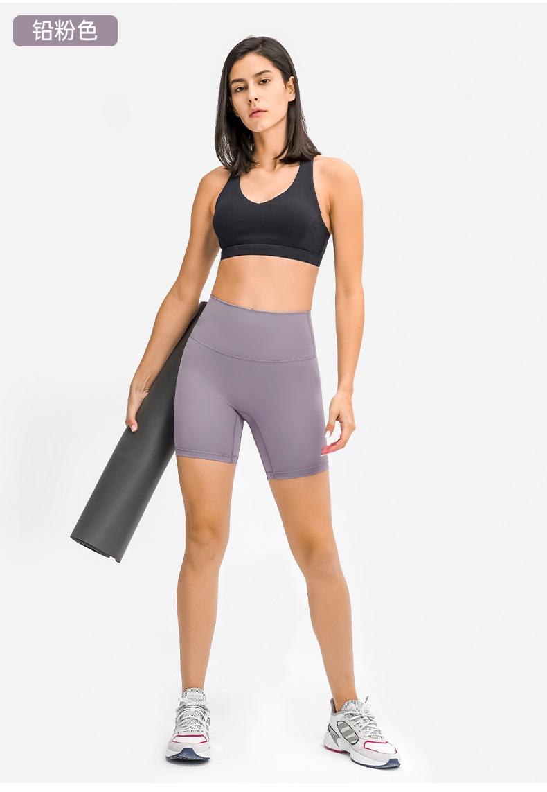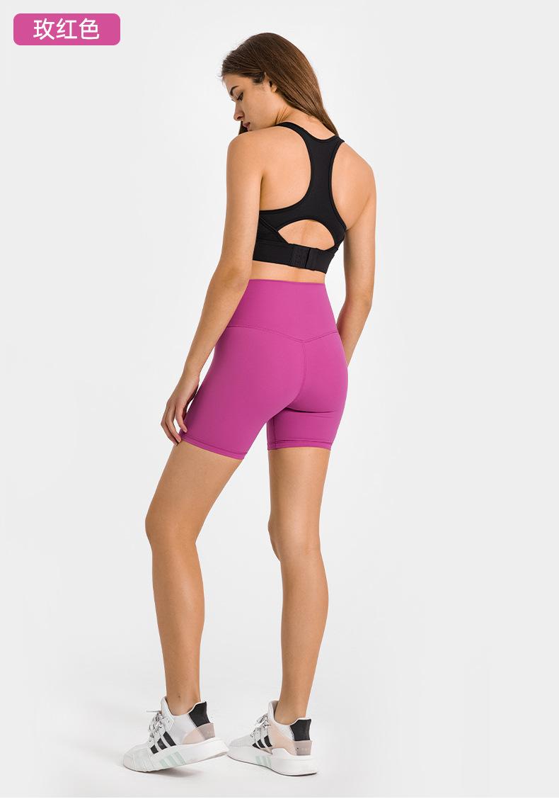 Primavera y Verano Nuevo Estilo T-Line Color Puro Fitness Yoga Shorts Cintura Alta Ajustados Elásticos Deportes Pantalones de Tres Puntos Dk067