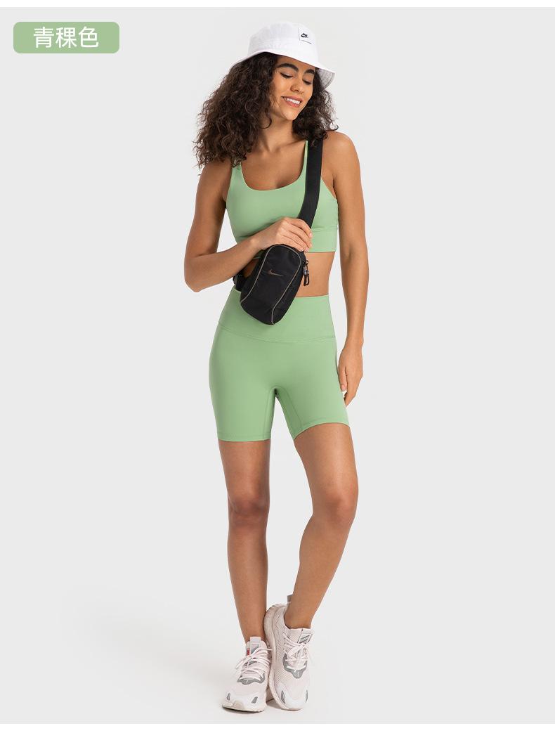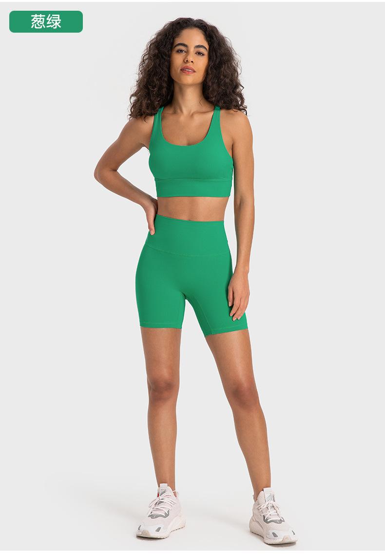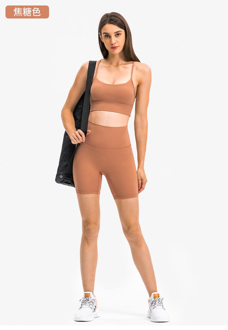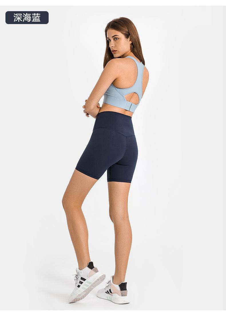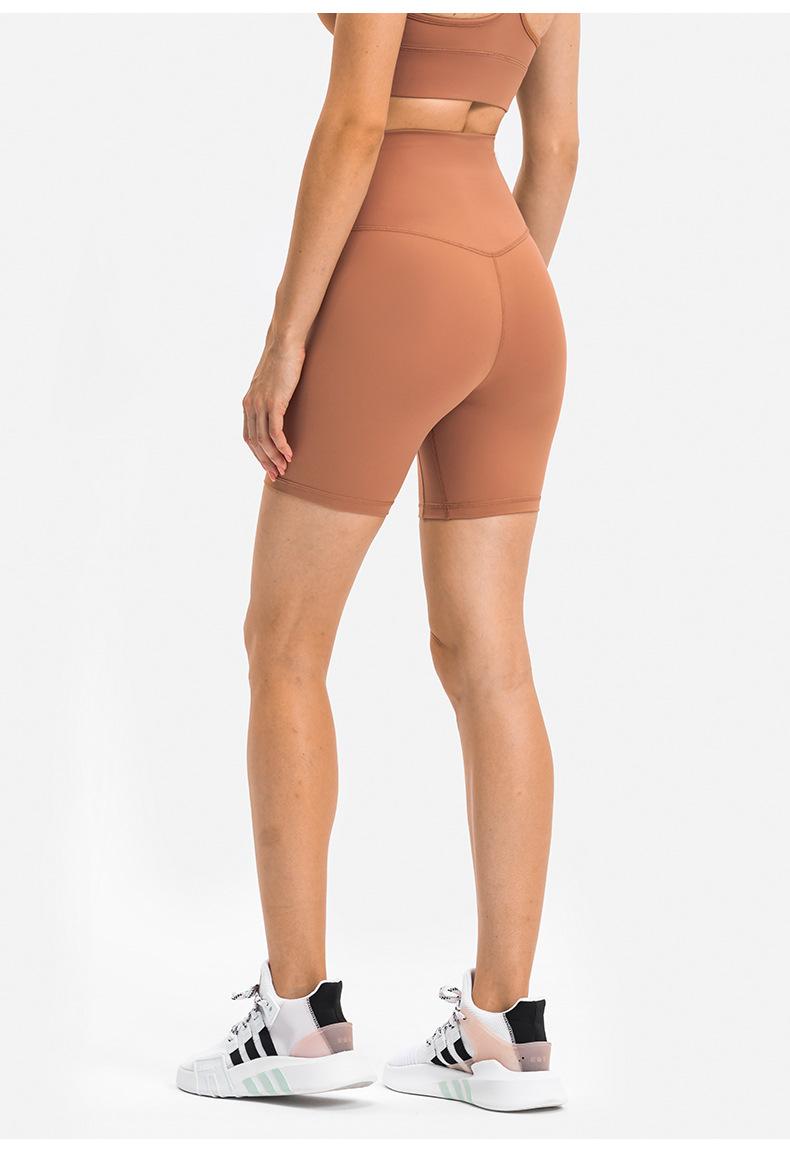Primavera y Verano Nuevo Estilo T-Line Color Puro Fitness Yoga Shorts Cintura Alta Ajustados Elásticos Deportes Pantalones de Tres Puntos Dk067