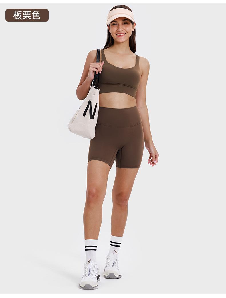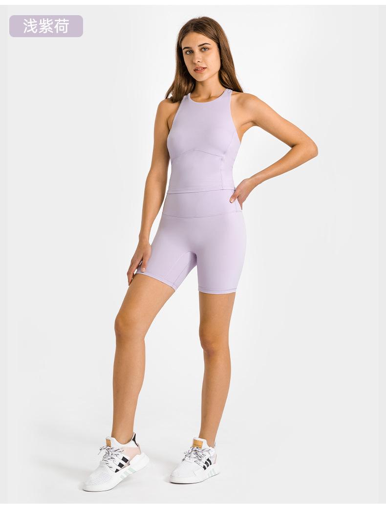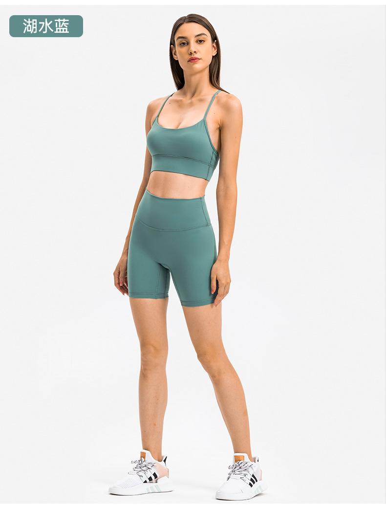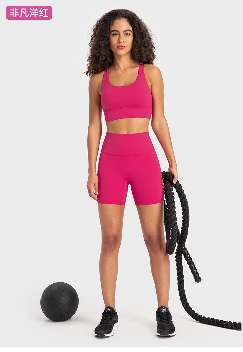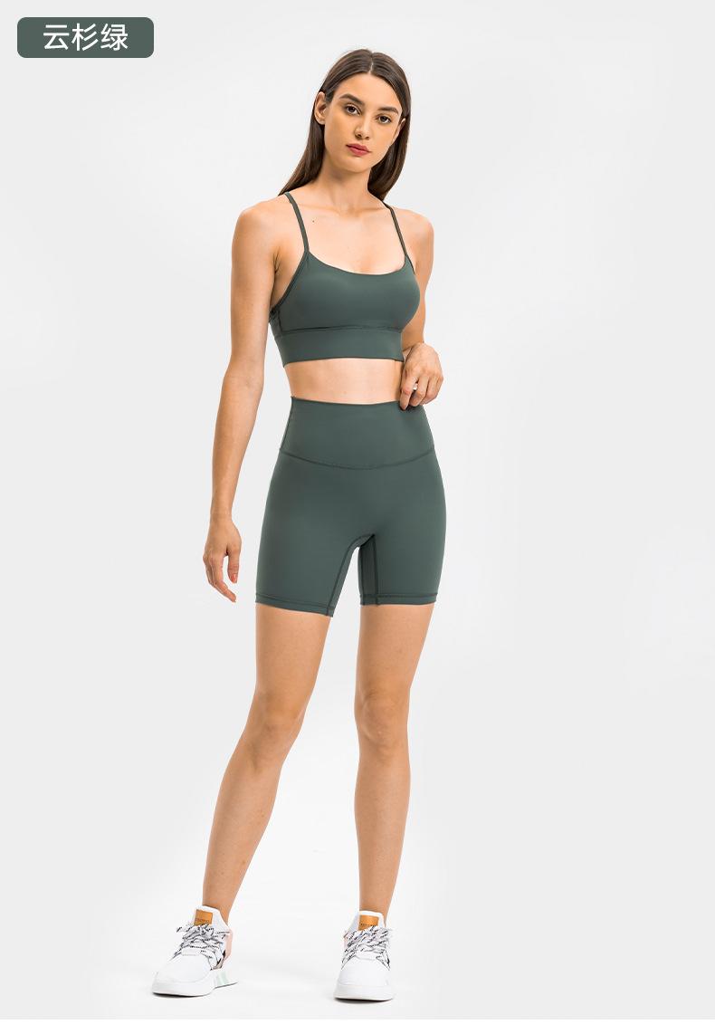Primavera y Verano Nuevo Estilo T-Line Color Puro Fitness Yoga Shorts Cintura Alta Ajustados Elásticos Deportes Pantalones de Tres Puntos Dk067