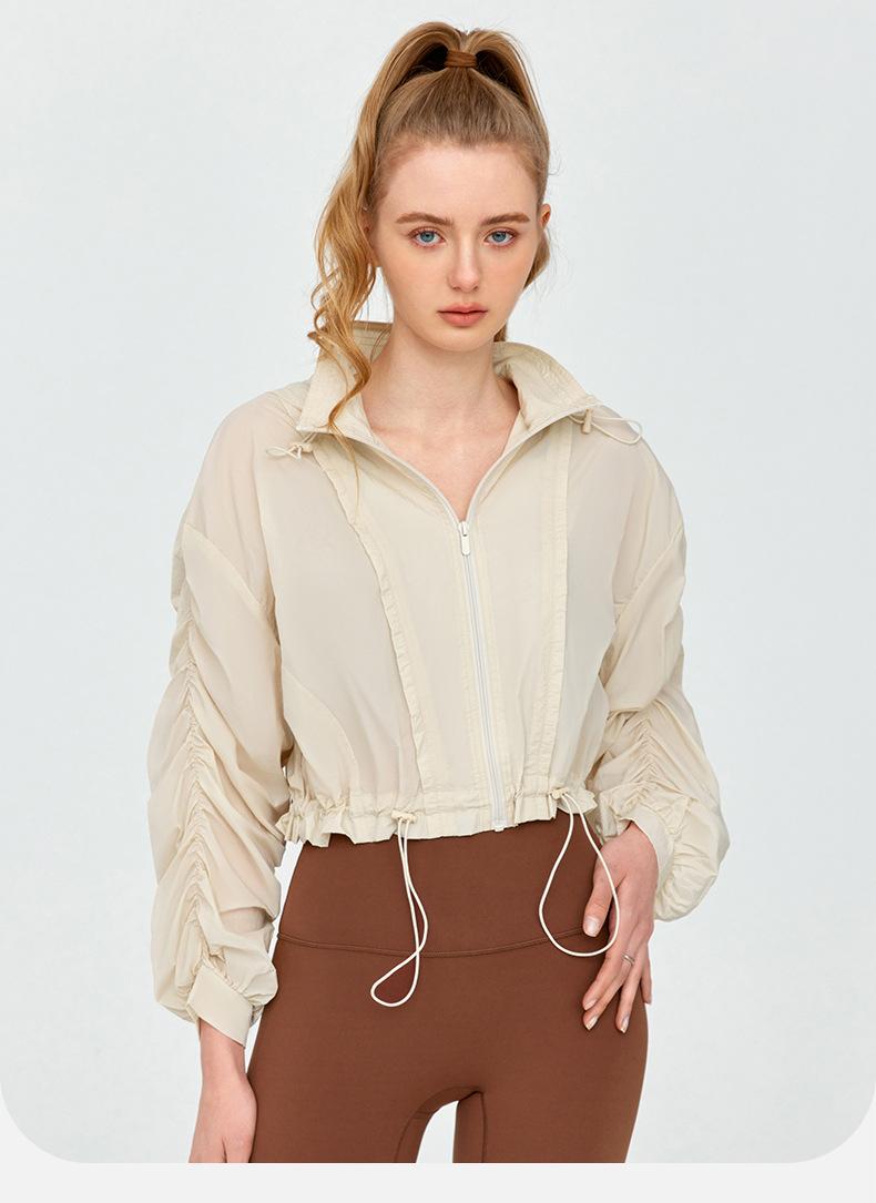 Cárdigan Deportivo Ligero y Transpirable Chaqueta Verano Corto Ropa de Fitness Primavera y Verano Casual Versátil Cordón Ropa de Yoga Top