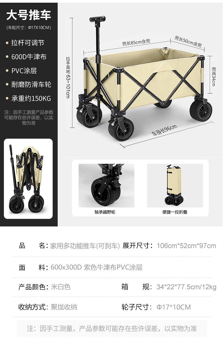 Creamy-white folding cart small size, Black folding cart small size, Second-generation upgraded double brake b...