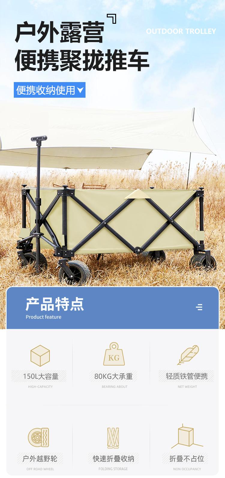 Carro de camping para exteriores plegable remolque de camping carro de campamento carro de picnic carro de mano tablero de mesa sobredimensionado portátil