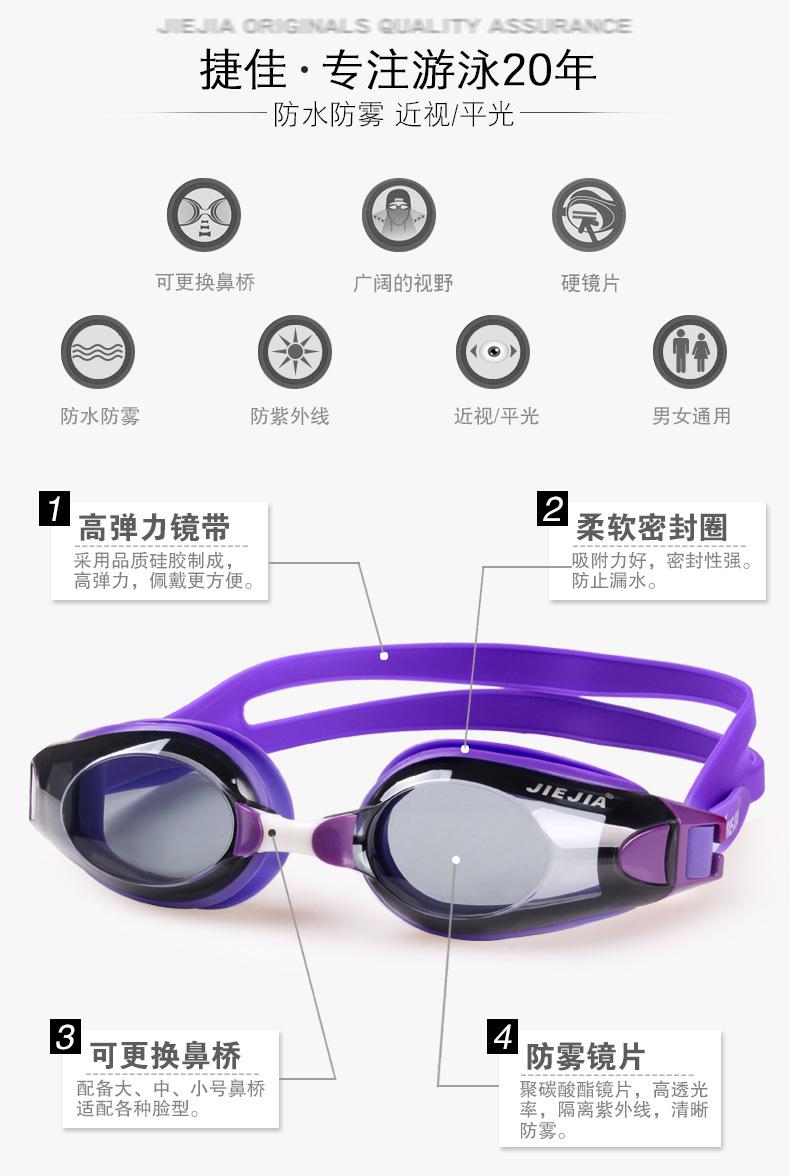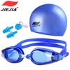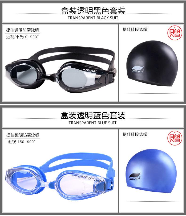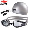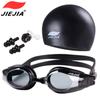 Jiejia Set de Natación Opt1003 Gafas de Natación Gorro de Silicona Plano Set para Miopía Gafas de Natación Anti-Vaho Alta Definición a Prueba de Ojos