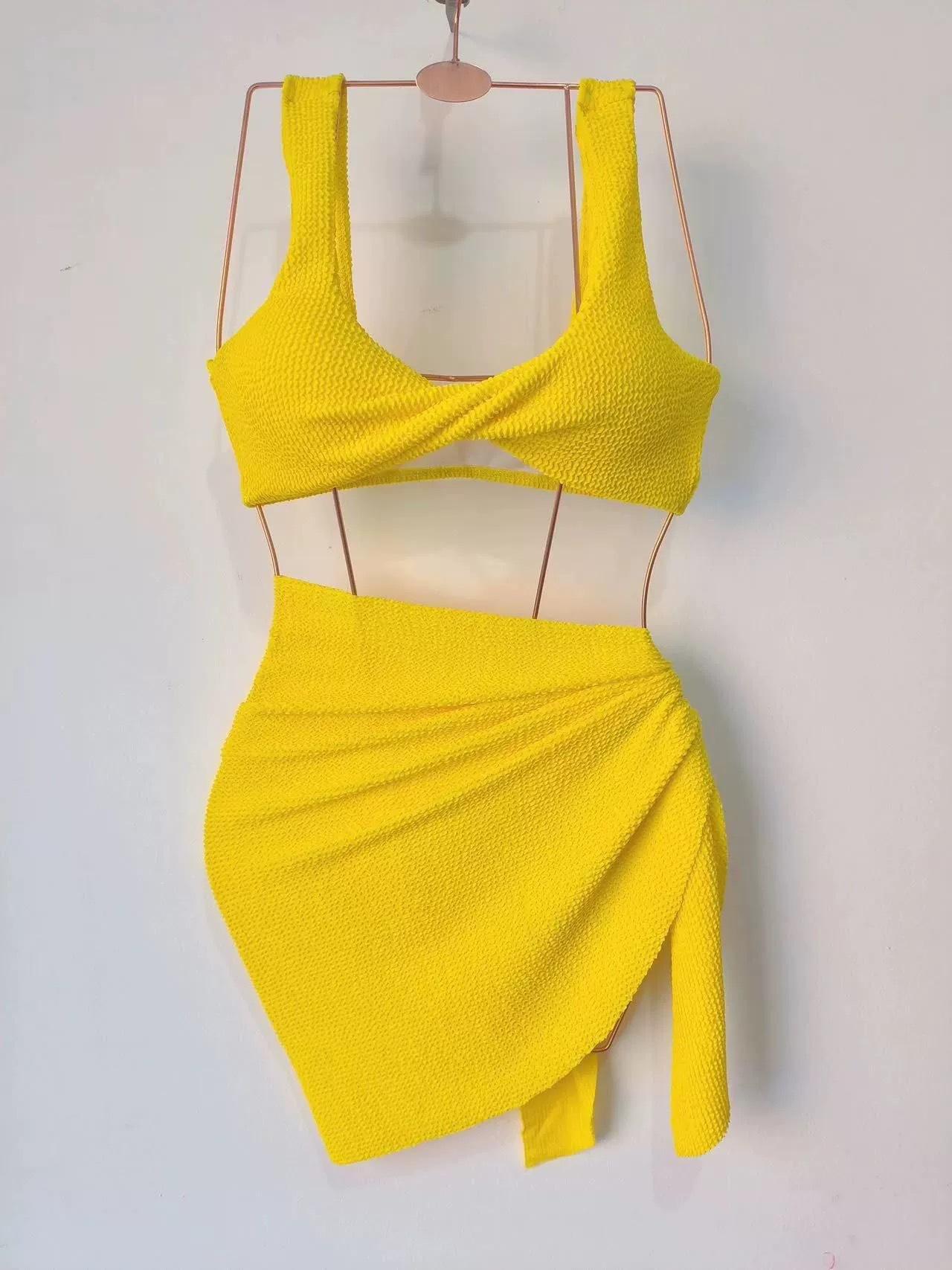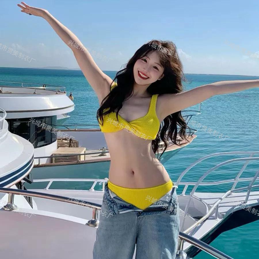 [Oferta especial de 5 colores] Bikini dividido de las Spice Girls, traje de baño sexy de tres piezas para playa, color caramelo, blanco