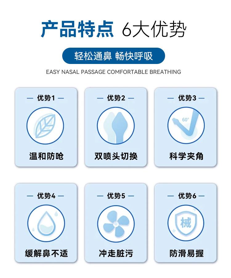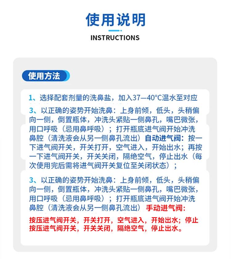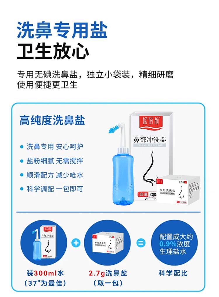 Lavador Nasal Manual para Adultos y Niños, Lavador Nasal Portátil para el Hogar, Sal Nasal, Solución Salina Fisiológica