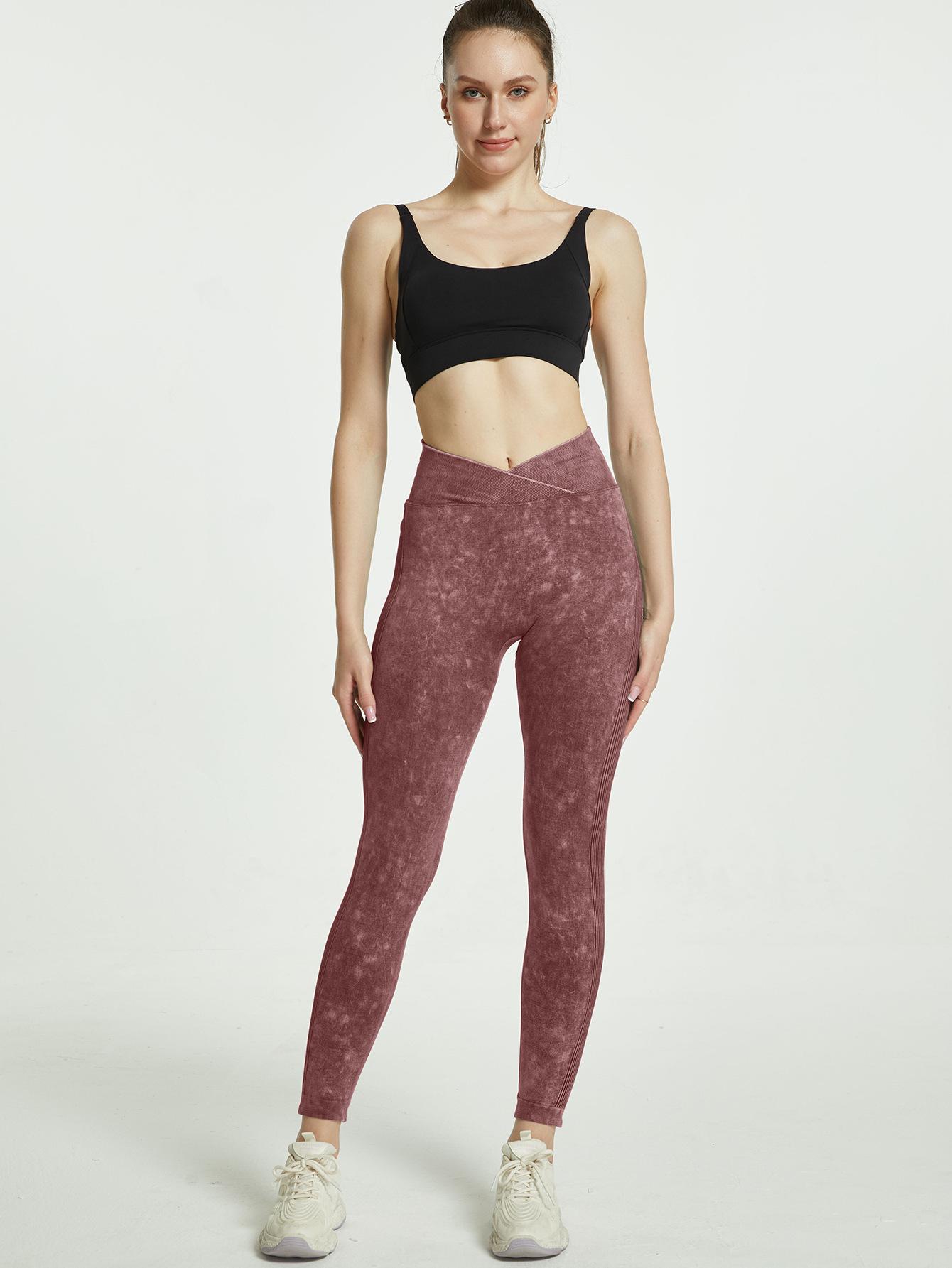 Pantalones deportivos scrub de cintura cruzada levanta glúteos para mujer, para correr, deportivos, ajustados, elásticos, reductores de abdomen, color melocotón nude, para yoga