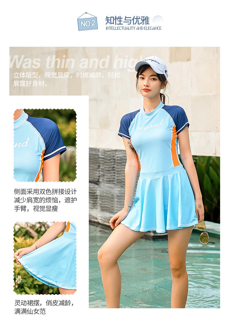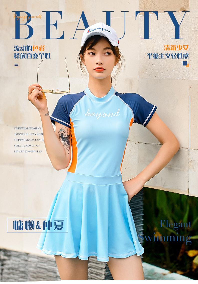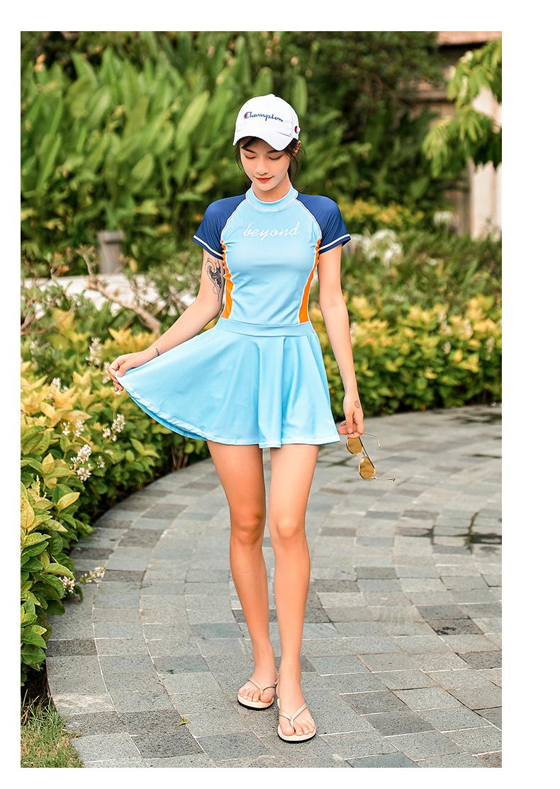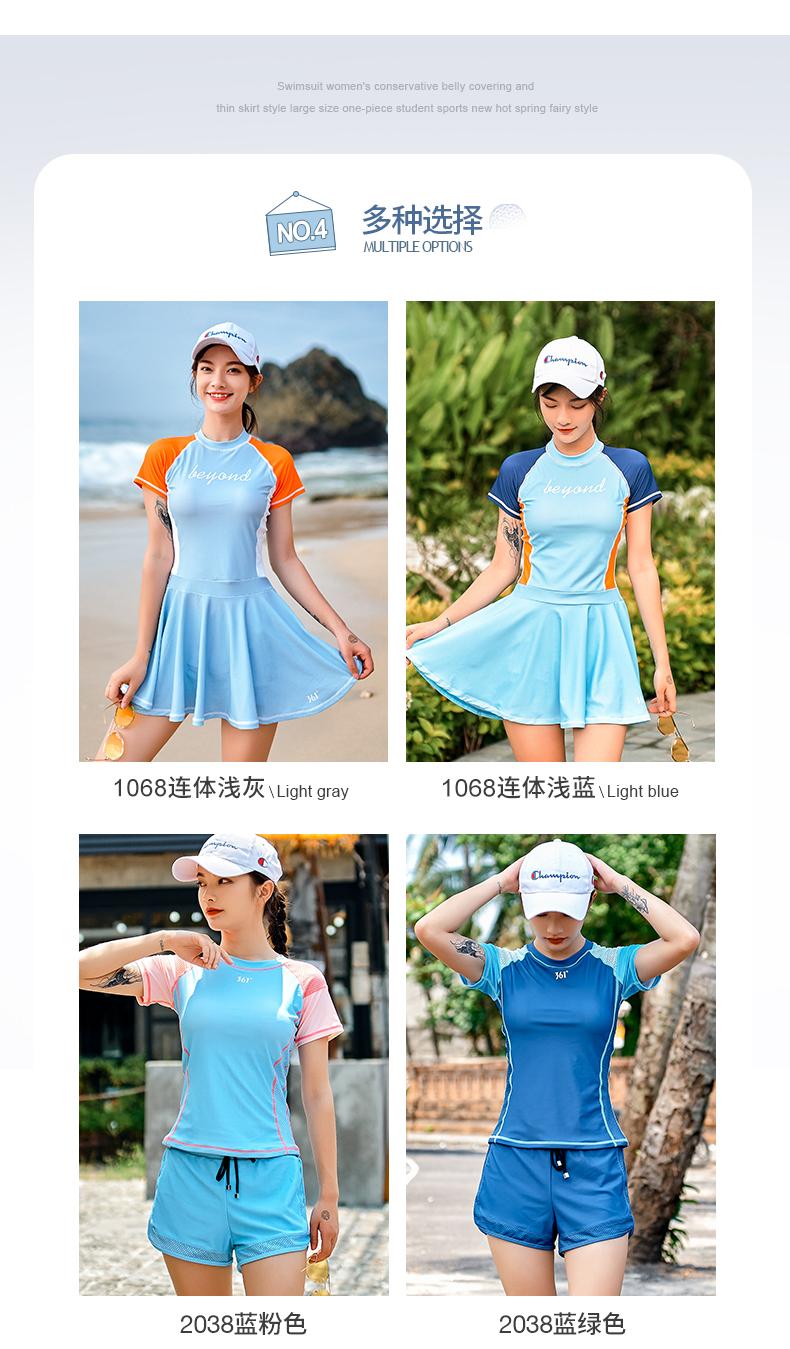 Traje de baño deportivo profesional con falda dividida 361 para estudiantes, estilo coreano conservador, que adelgaza y cubre el vientre.