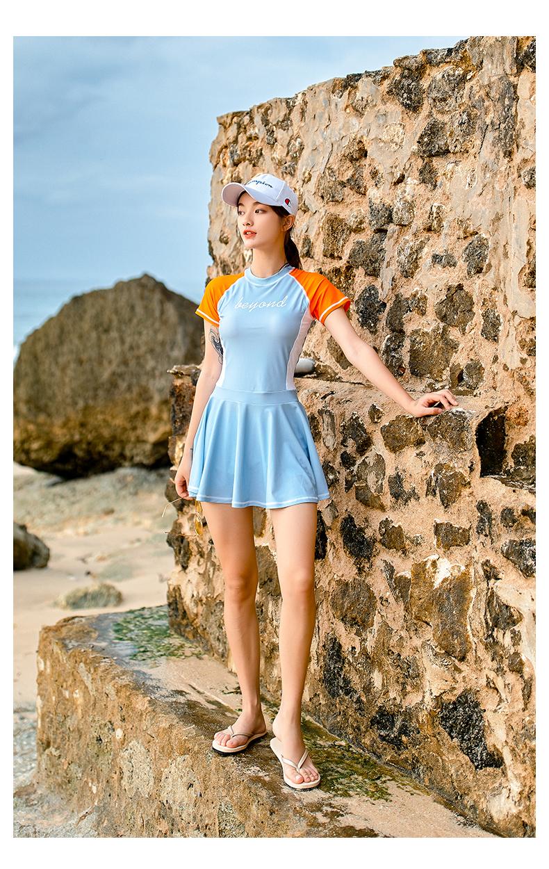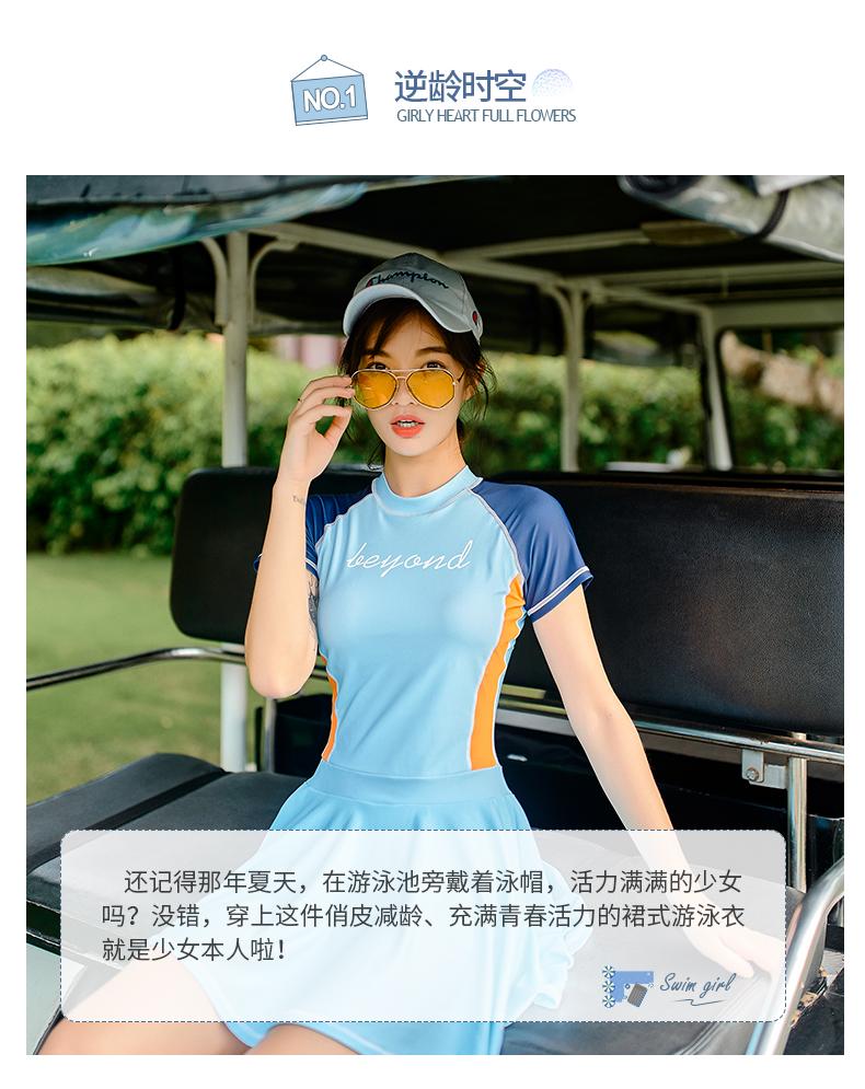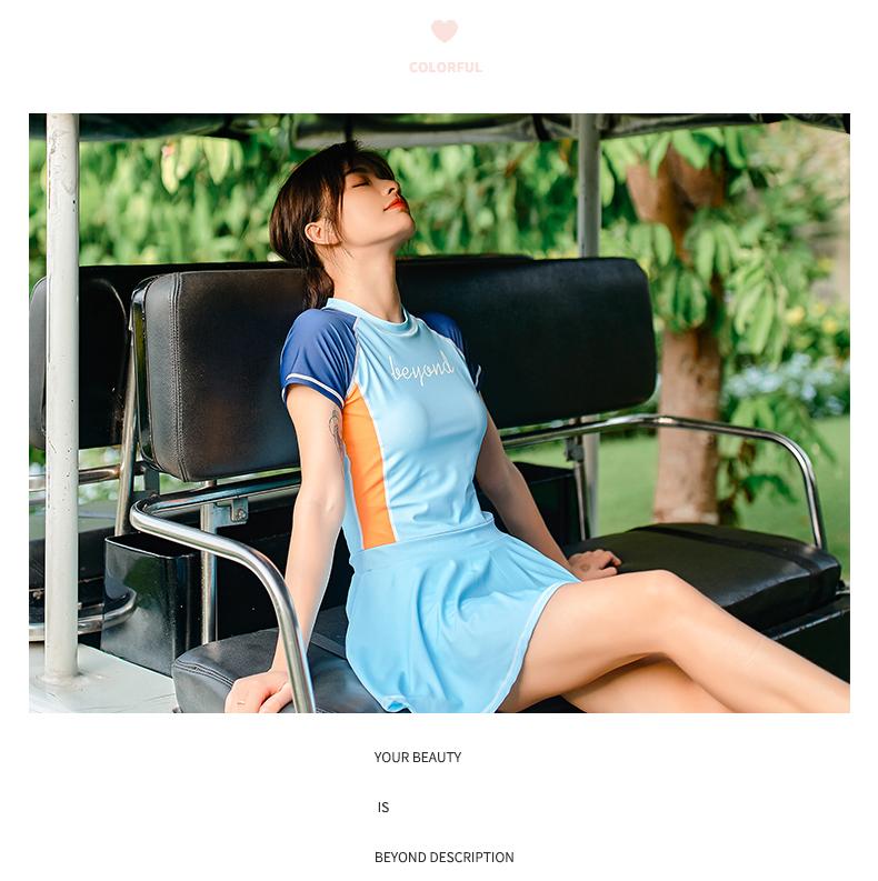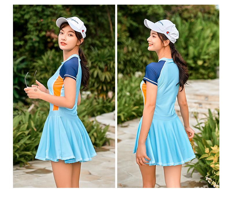 Traje de baño deportivo profesional con falda dividida 361 para estudiantes, estilo coreano conservador, que adelgaza y cubre el vientre.