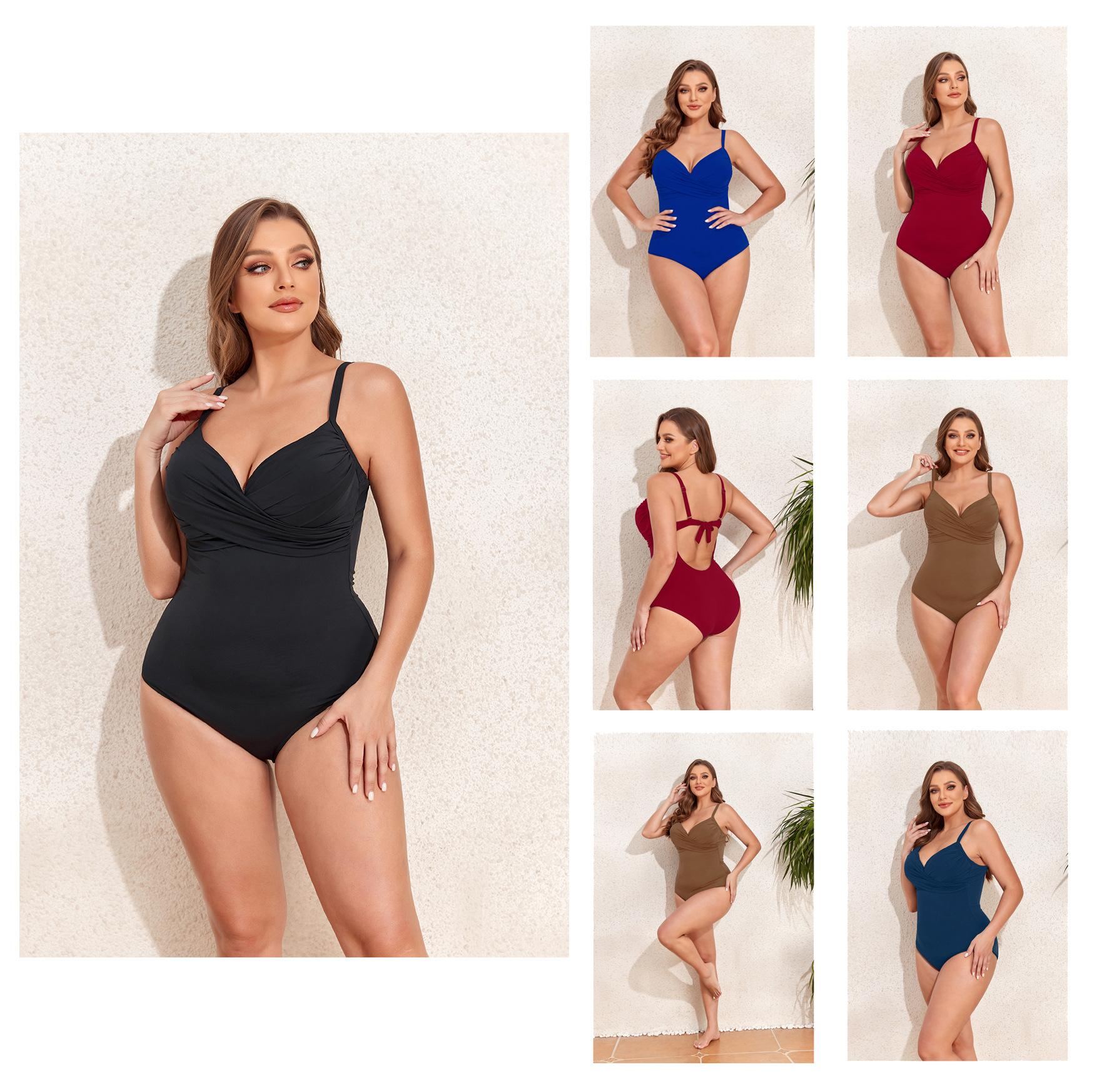Traje de Baño Conservador Delgado de Una Pieza de Color Puro de Talla Grande Europeo y Americano Transfronterizo 2023 Traje de Baño Bikini Amazon para Mujer