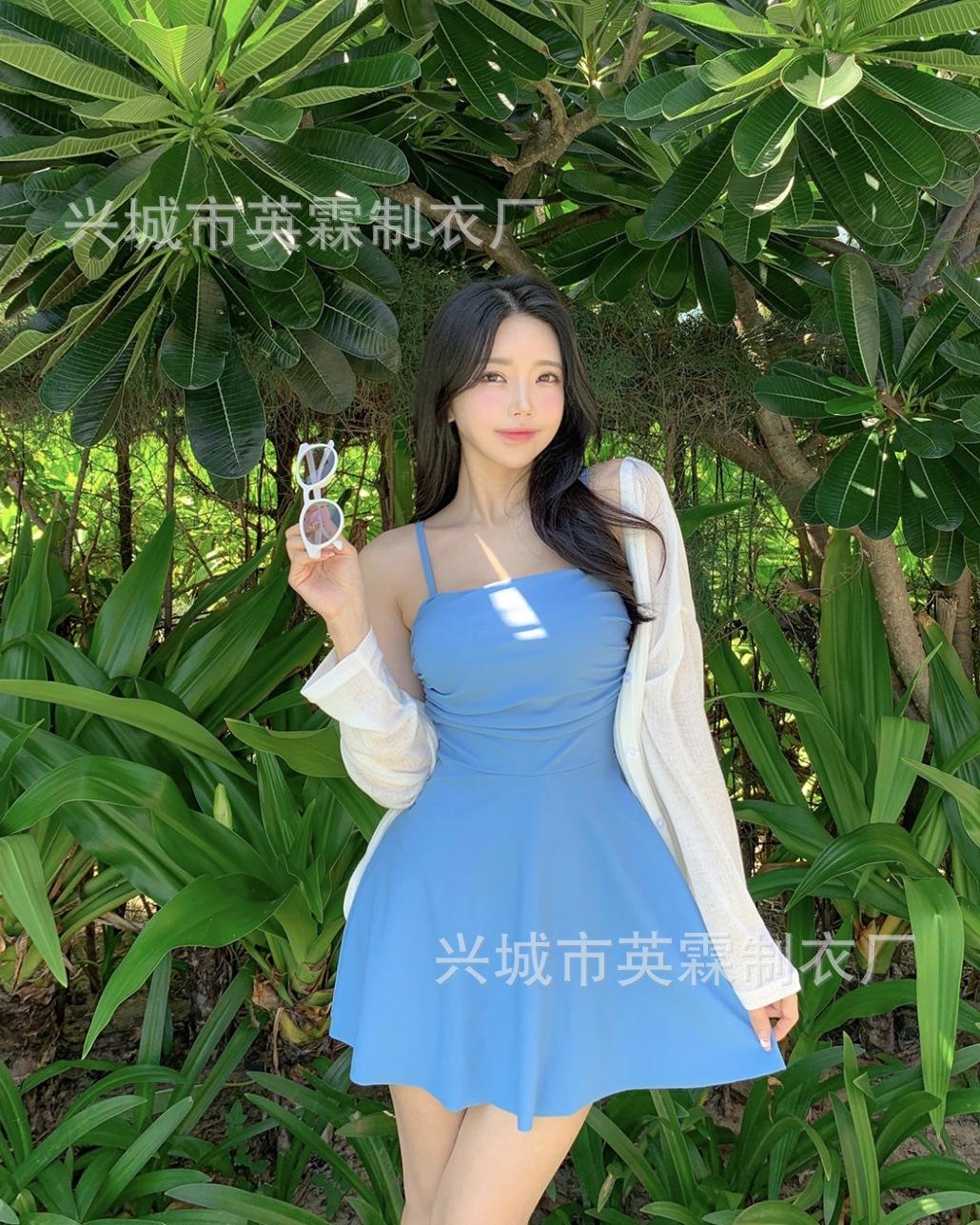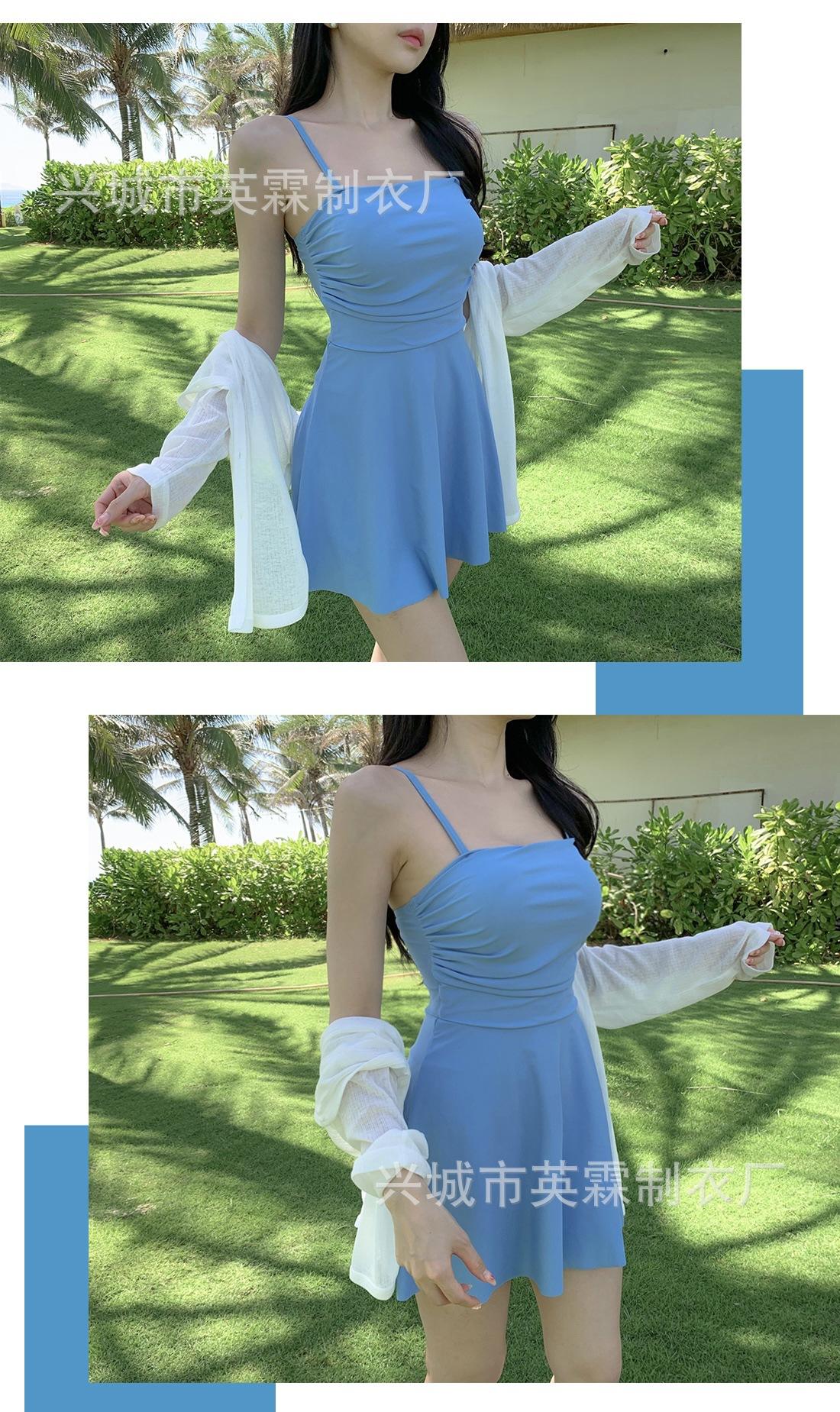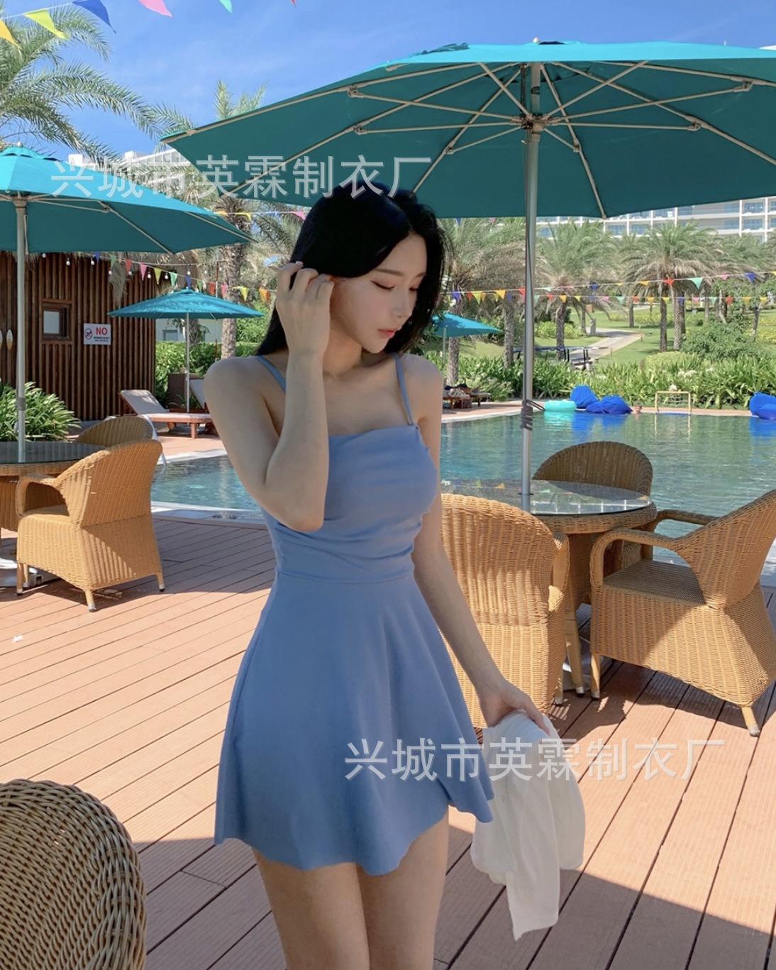Traje de baño de estilo coreano Ins Style 2024, nuevo, de color sólido, para mujer, fresco y conservador, que cubre la piel, adelgazante, de aguas termales.