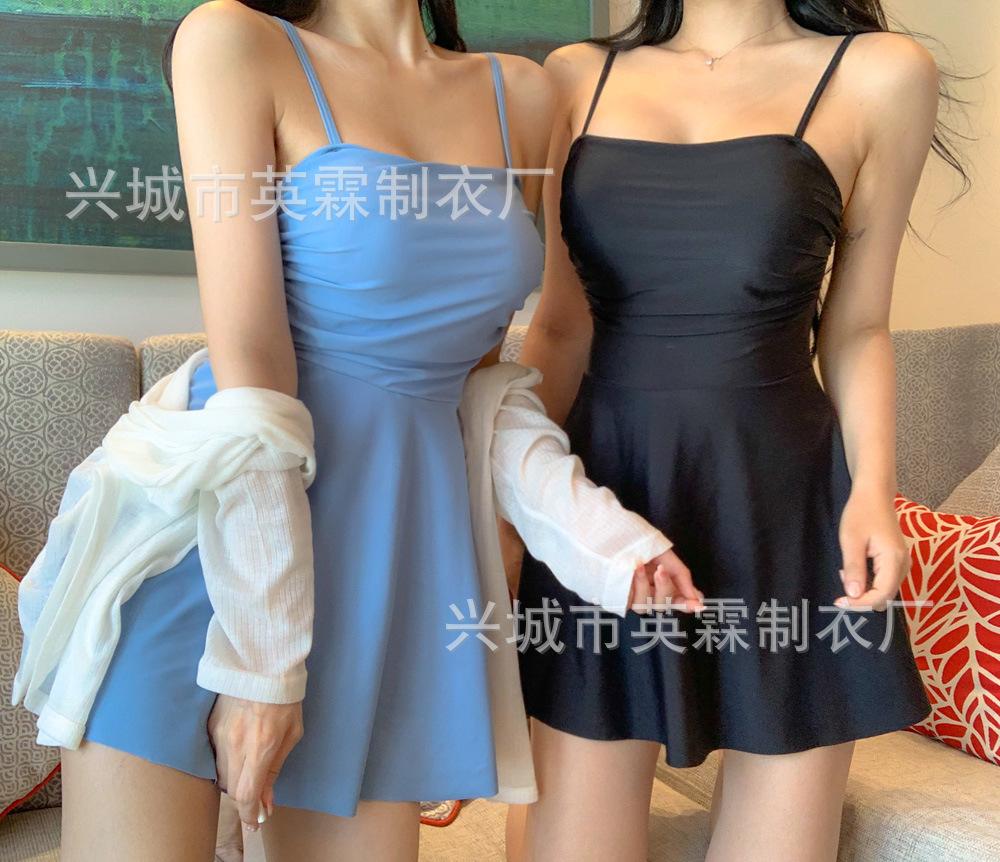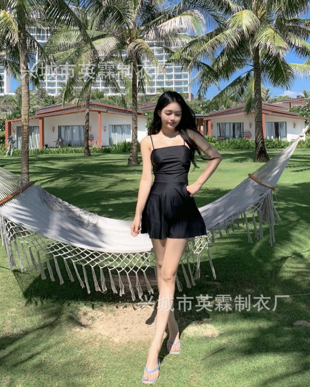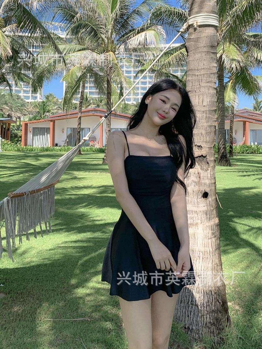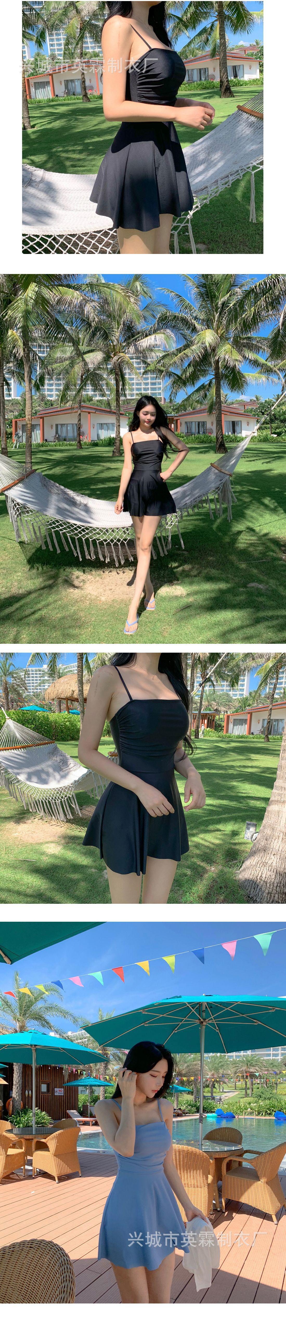 Traje de baño de estilo coreano Ins Style 2024, nuevo, de color sólido, para mujer, fresco y conservador, que cubre la piel, adelgazante, de aguas termales.