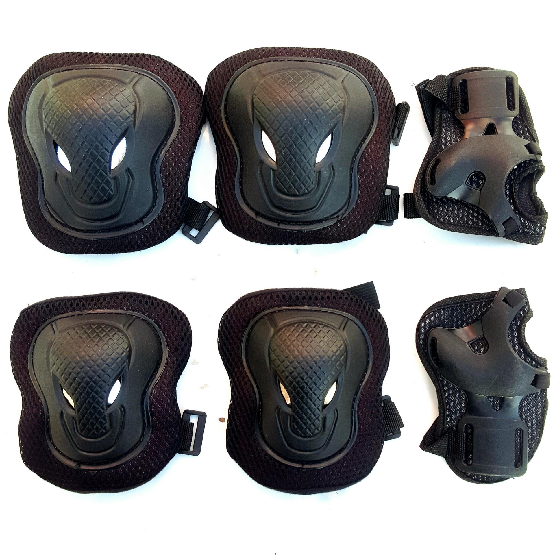 4. Embalaje: juego de seis piezas de rodilleras, coderas y almohadillas para la palma/bolsa de red.