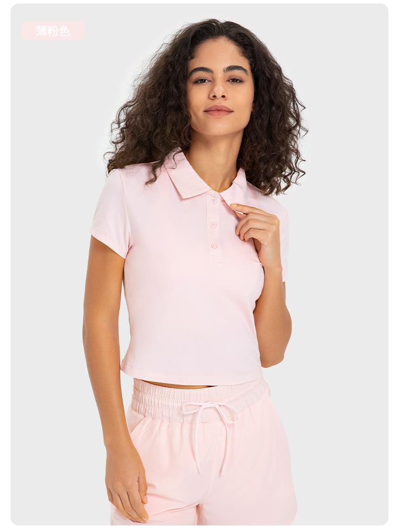 Compra Polo de Mujer de Manga Corta Deportivo Slim con Solapa de Secado Rápido Absorbe la Humedad Transpirable Camiseta de Yoga Fitness Ds335 al por mayor en Joom.pro