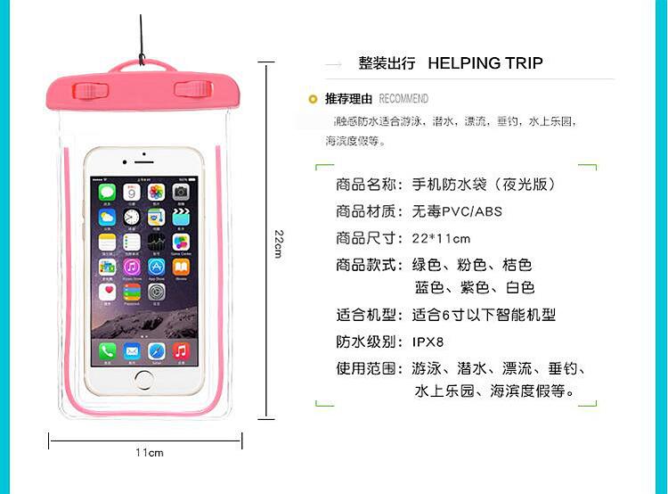 Bolsa impermeable para teléfono móvil, venta al por mayor de fábrica, con pantalla táctil, para natación, buceo, bolsa protectora sellada, funda transparente para teléfono móvil para llevar.