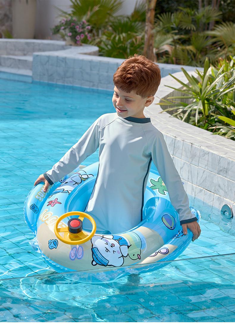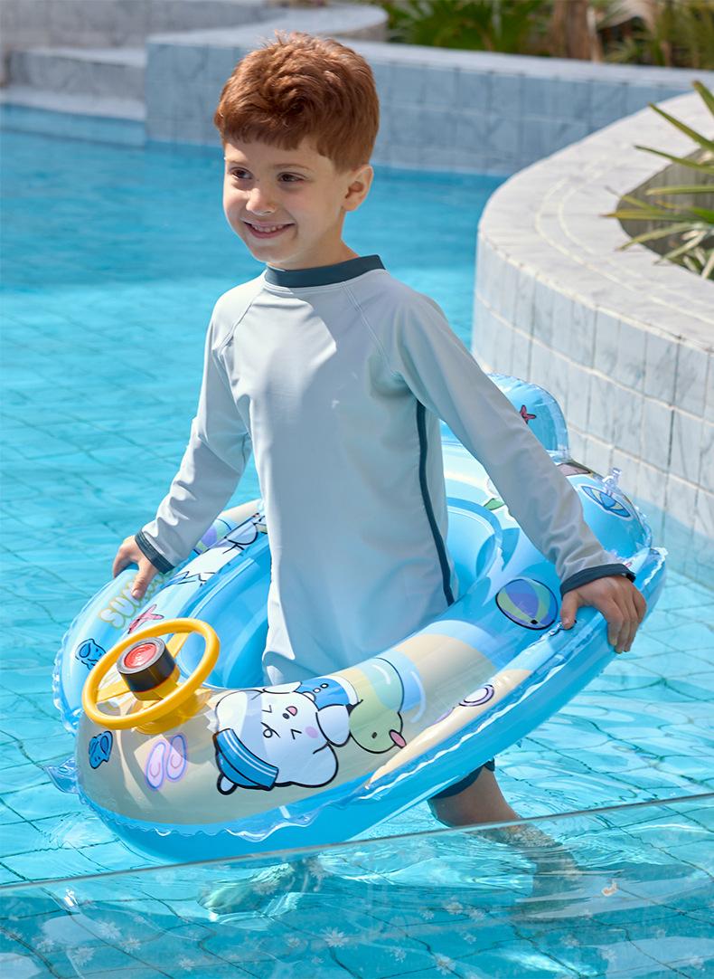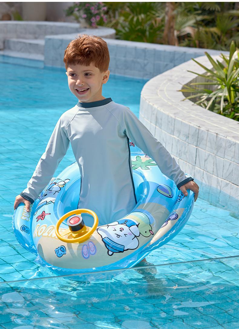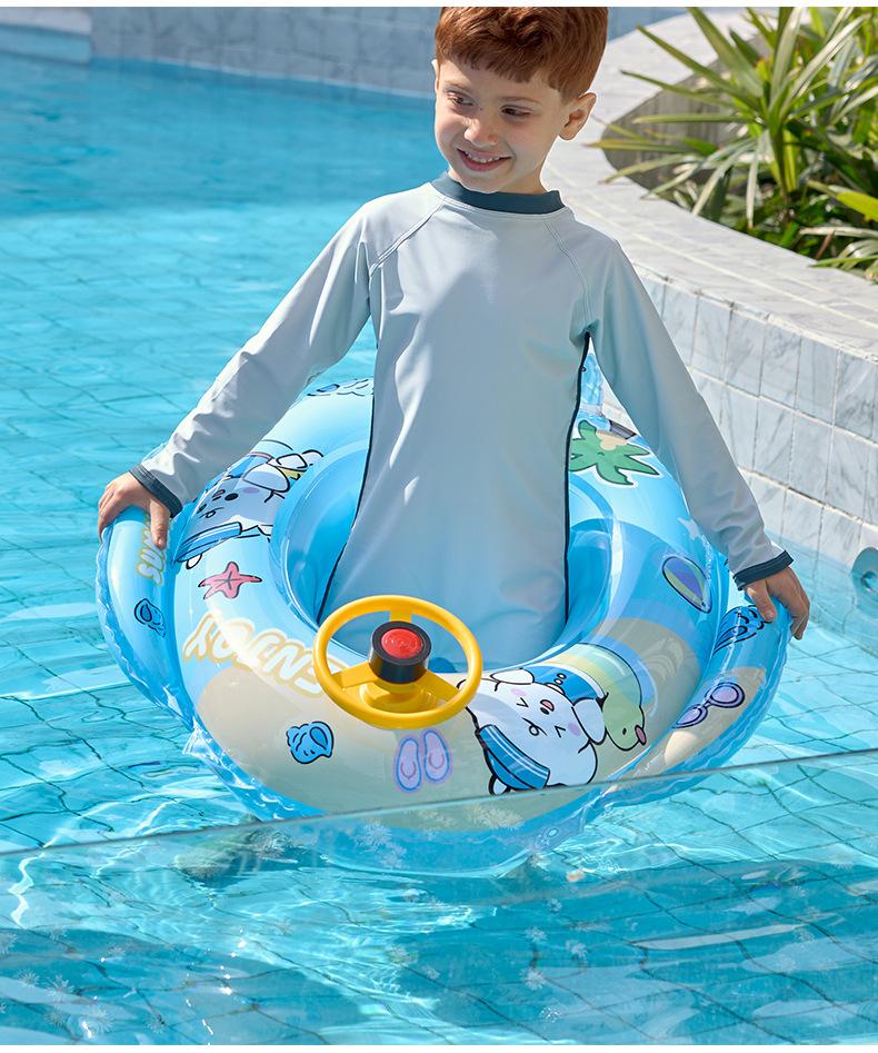 Asiento de natación para bebé 2024, asiento con volante, anillo de natación para barco, asiento de natación inflable para niños con cachorro de dibujos animados