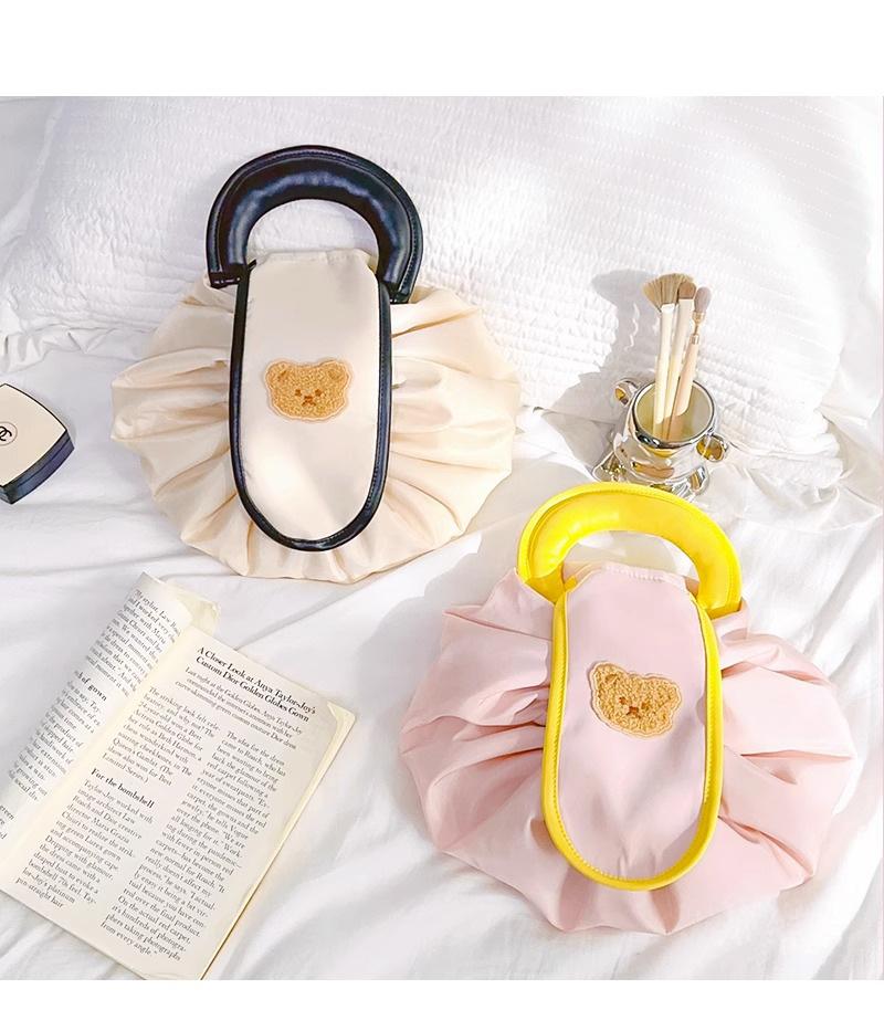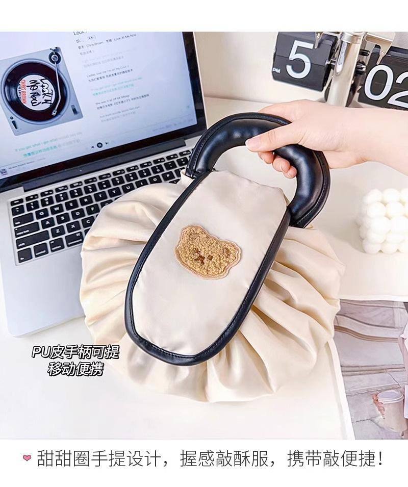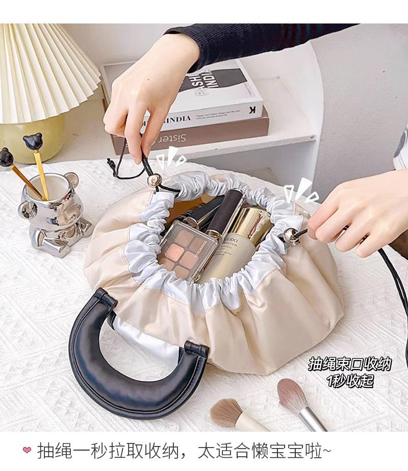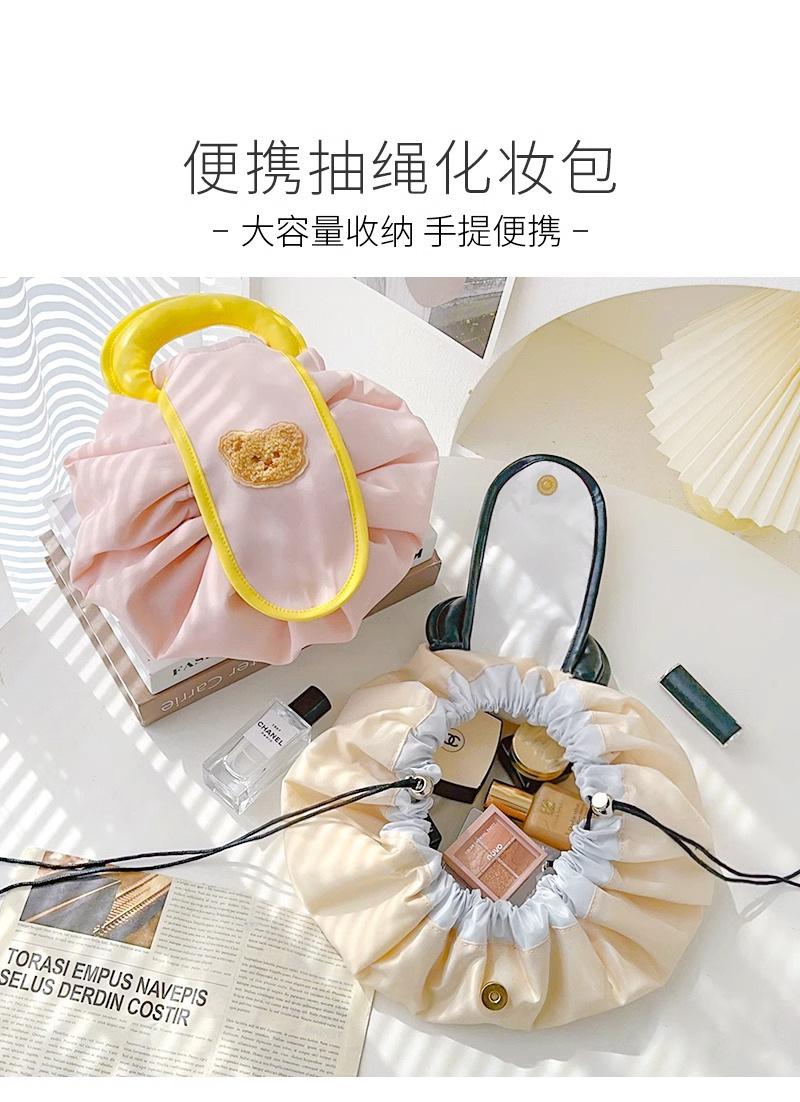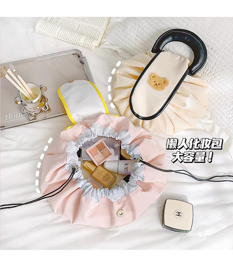 Bolsa de almacenamiento de cosméticos portátil, bolsa de lavado portátil, gran capacidad, bolsa de cosméticos con cordón de aspecto perezoso, venta al por mayor