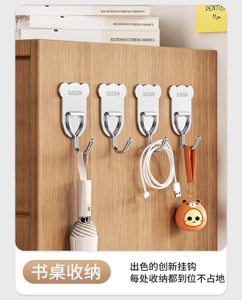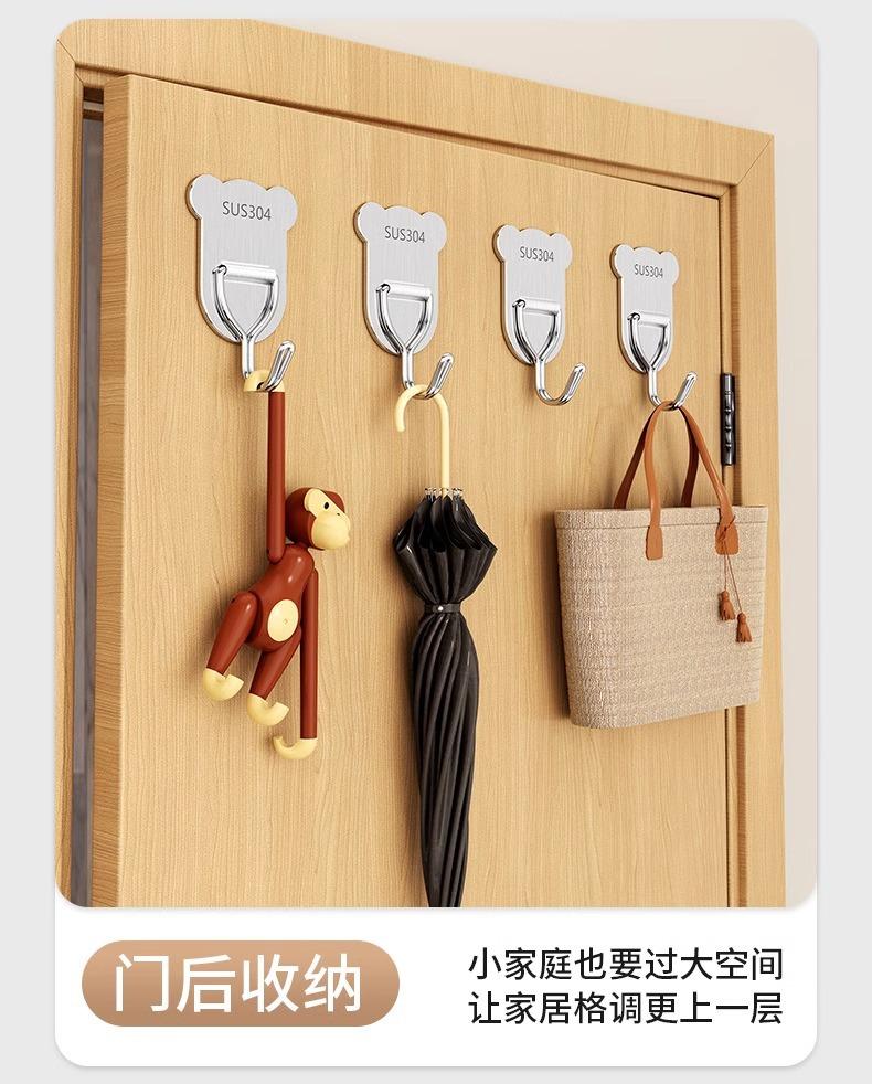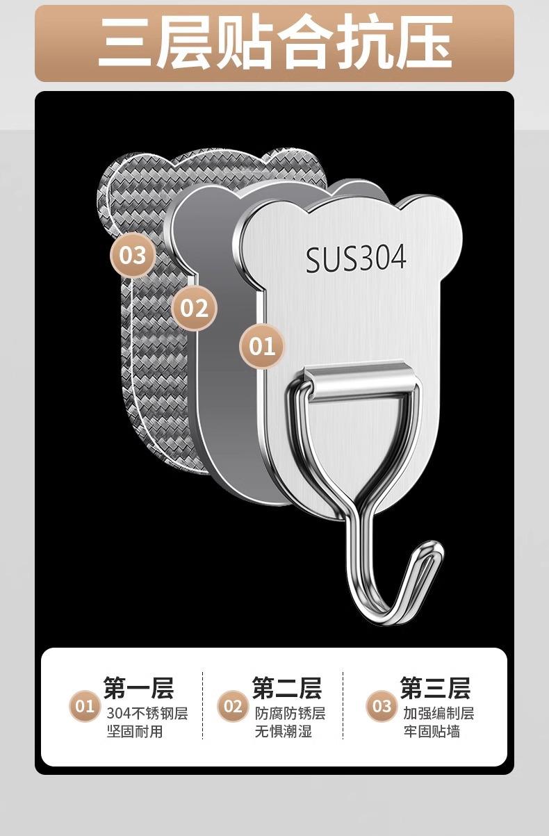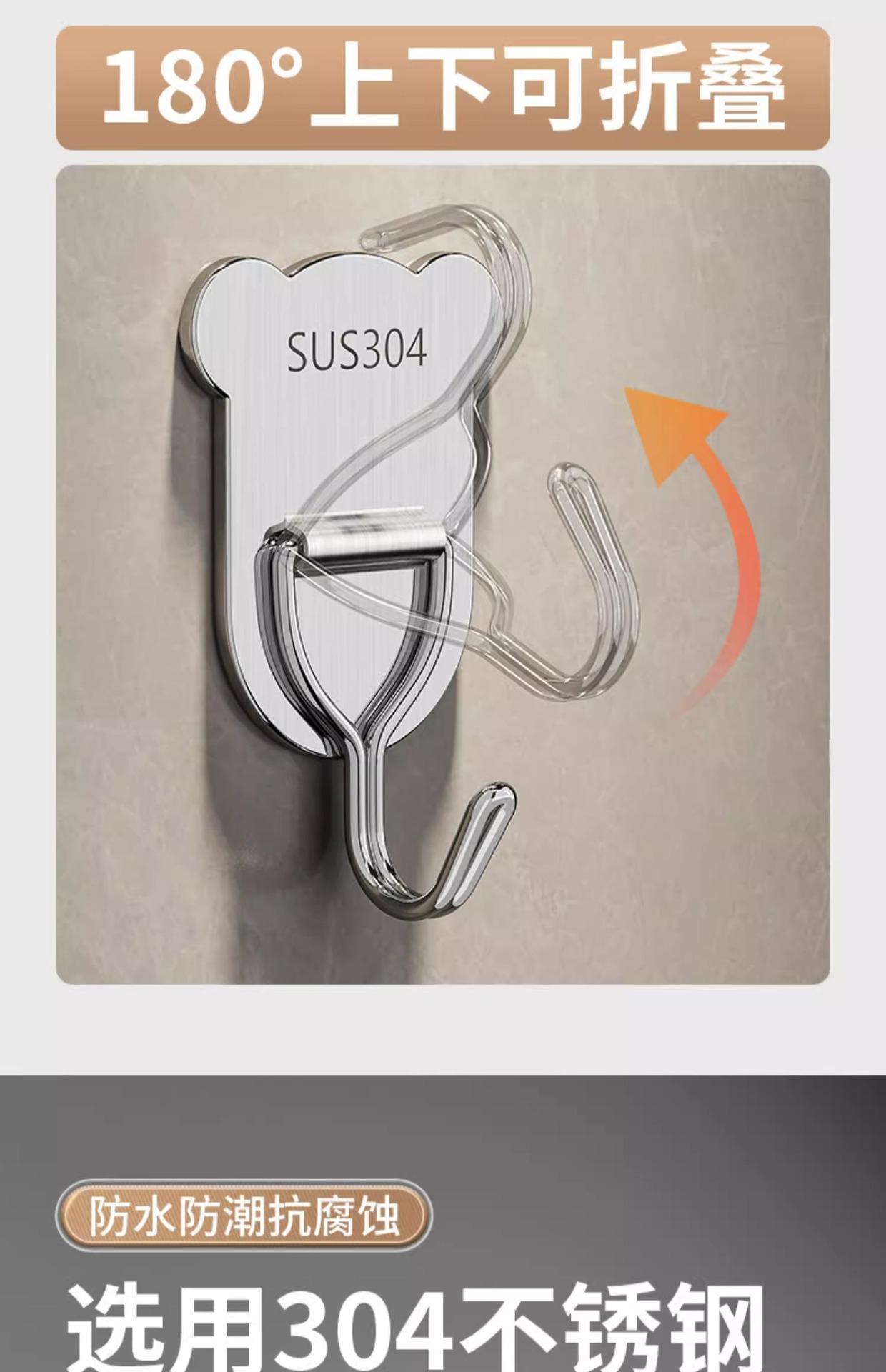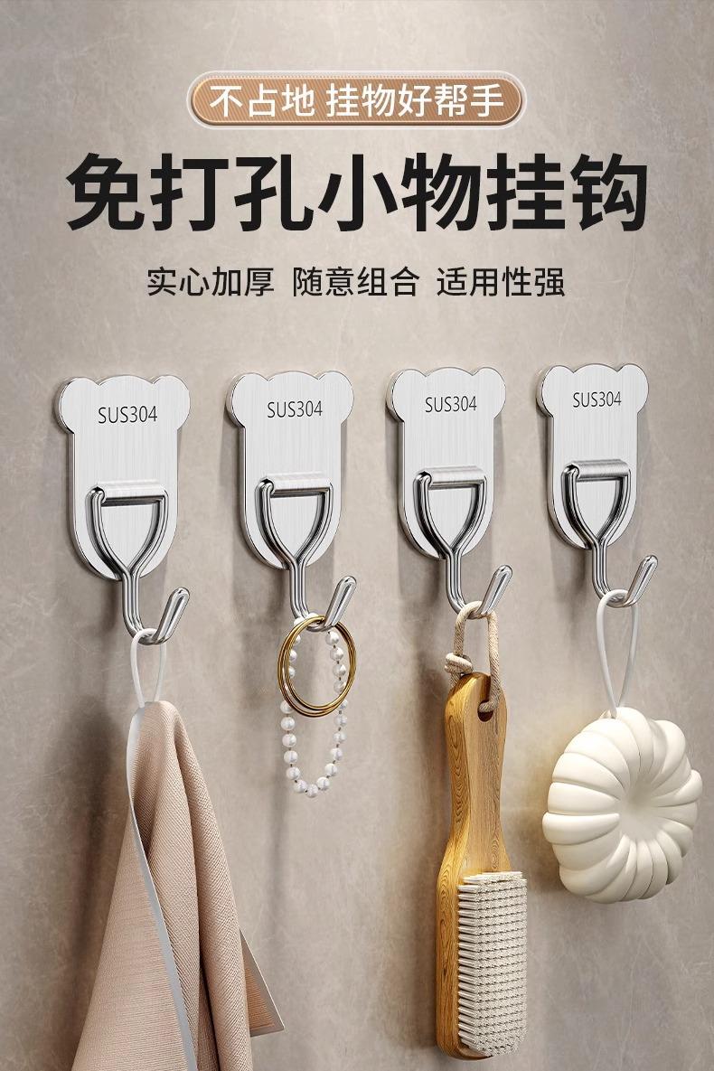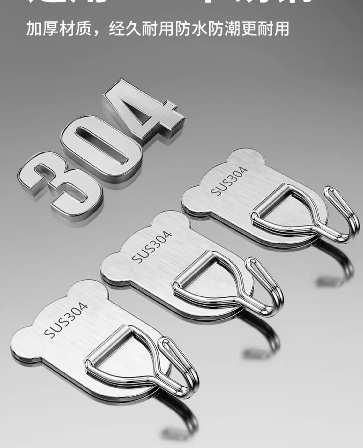 Gancho de acero inoxidable de fuerte carga, gancho adhesivo no perforado, gancho para toalla para colgar en la pared de baño, cocina, hogar, gancho para ropa para puerta