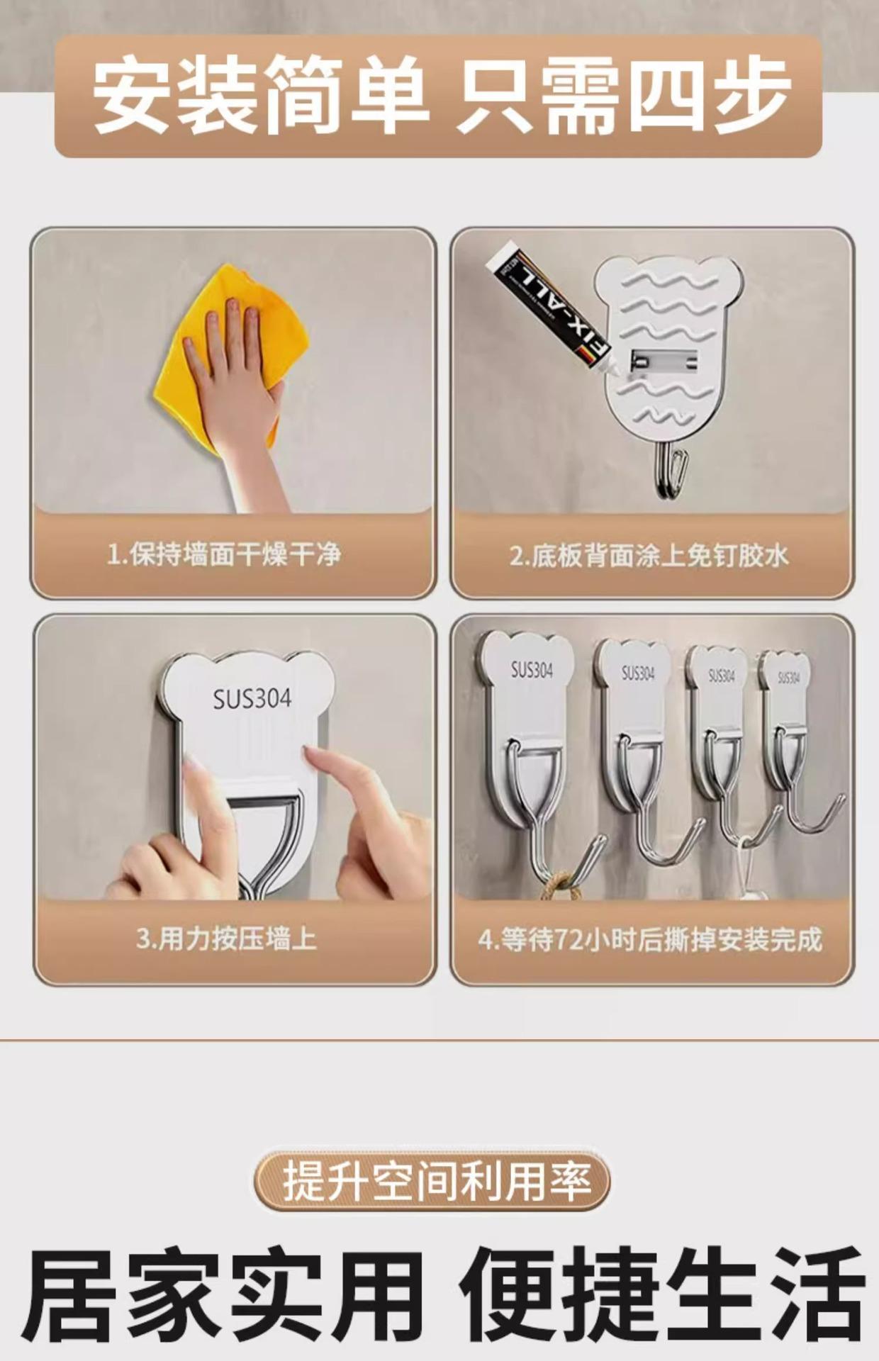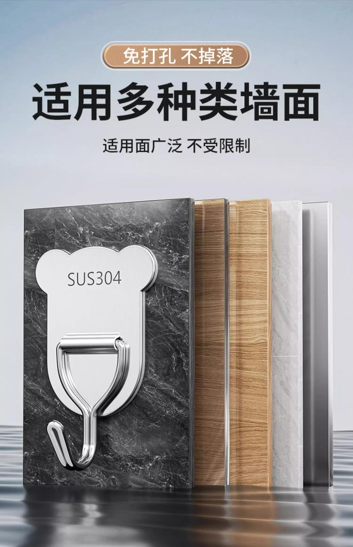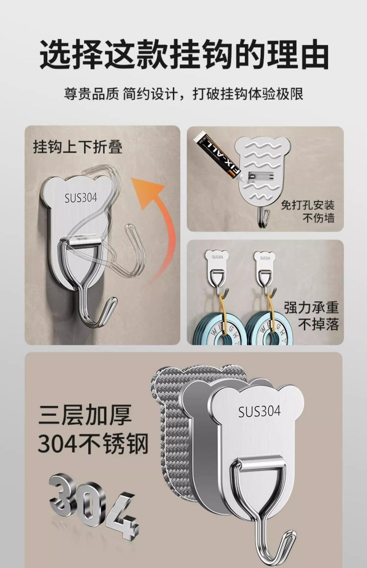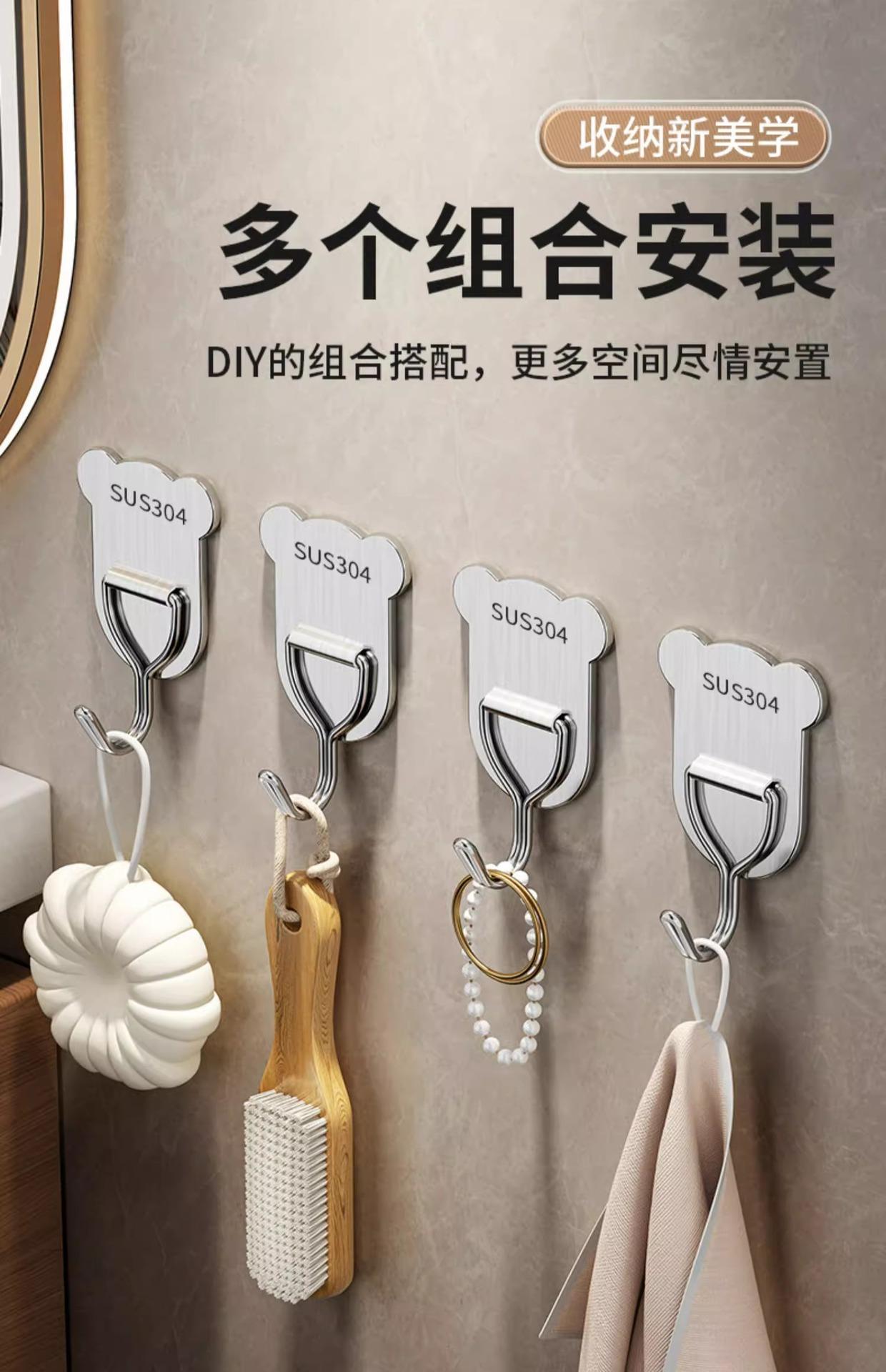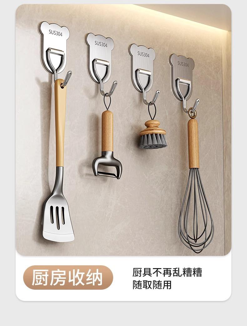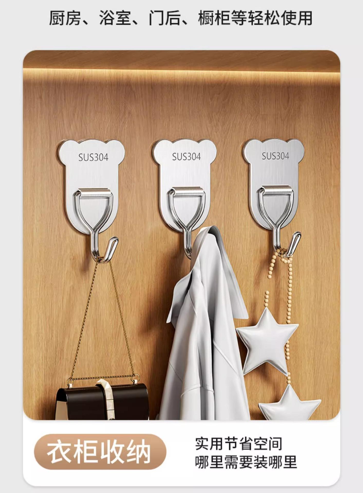 Gancho de acero inoxidable de fuerte carga, gancho adhesivo no perforado, gancho para toalla para colgar en la pared de baño, cocina, hogar, gancho para ropa para puerta