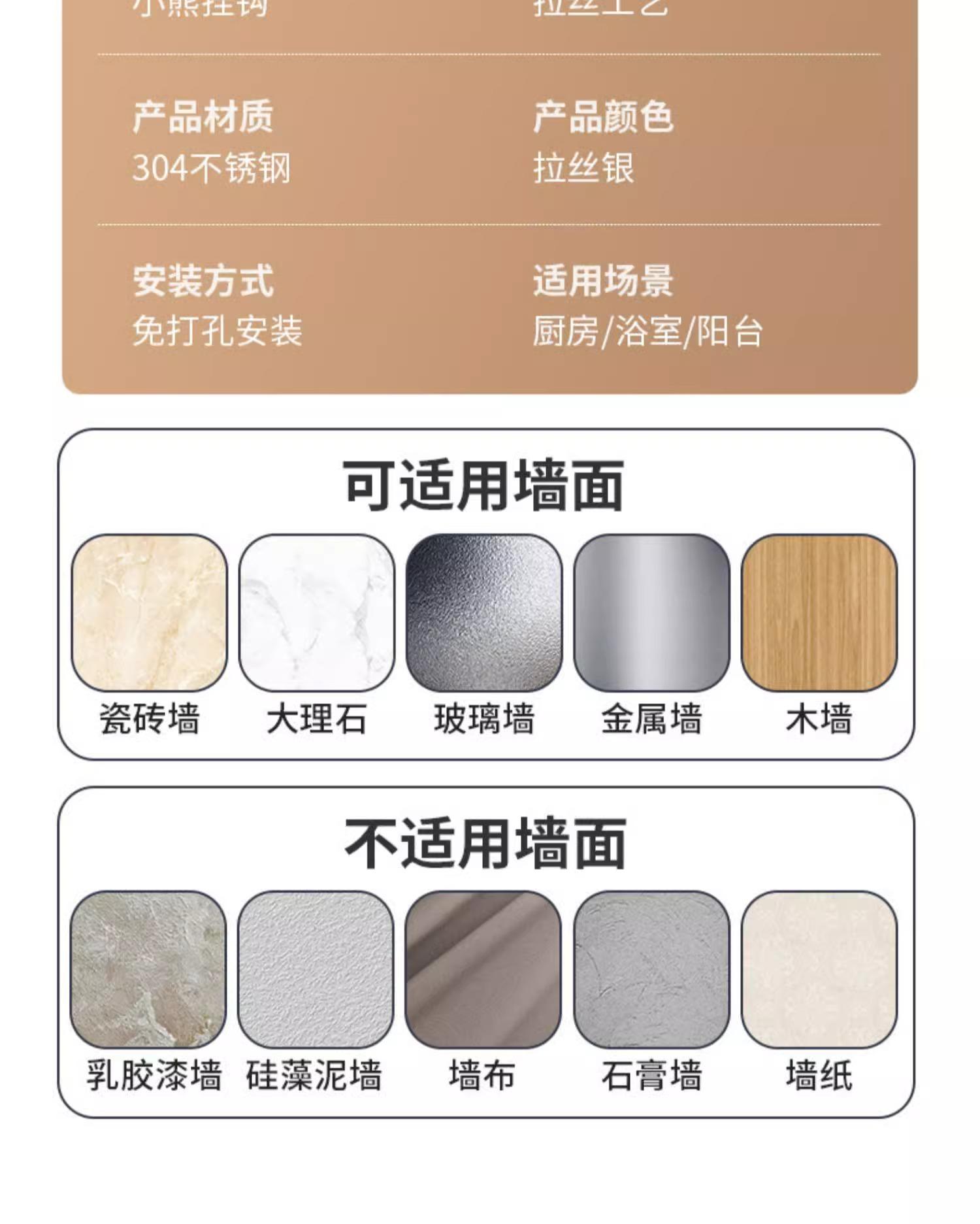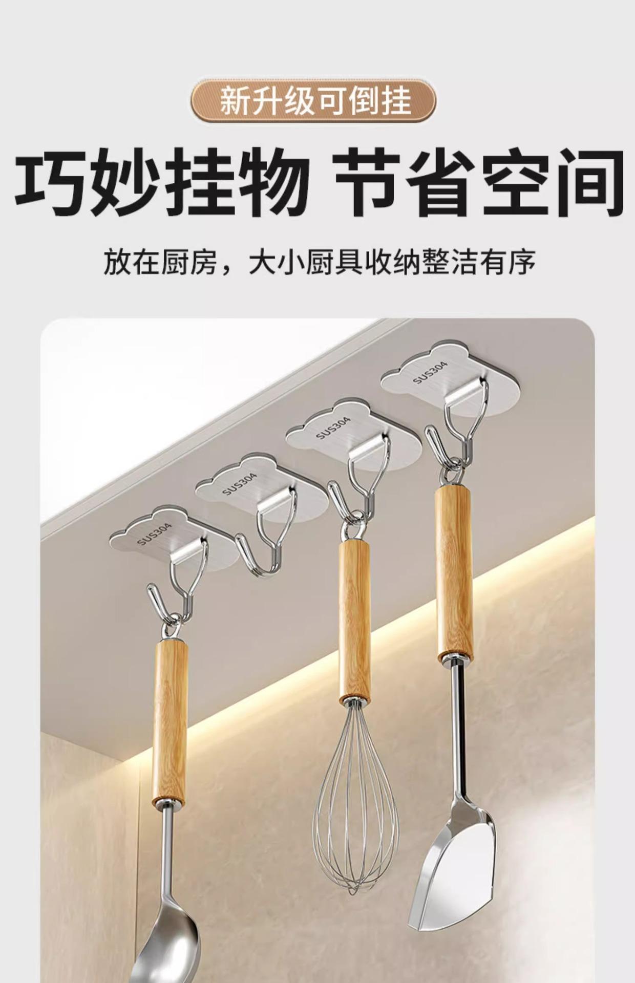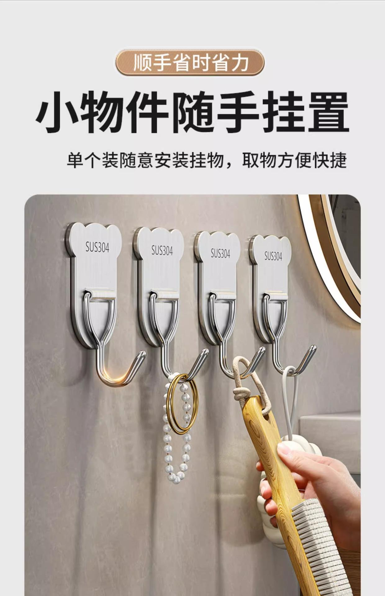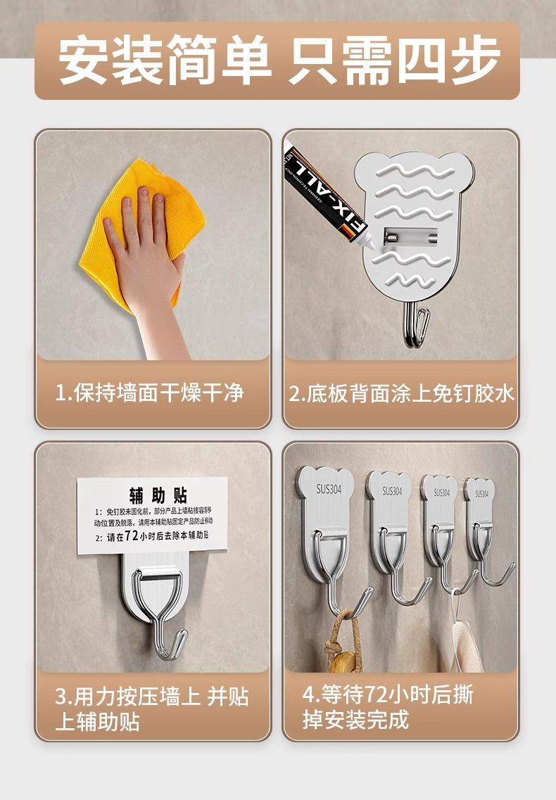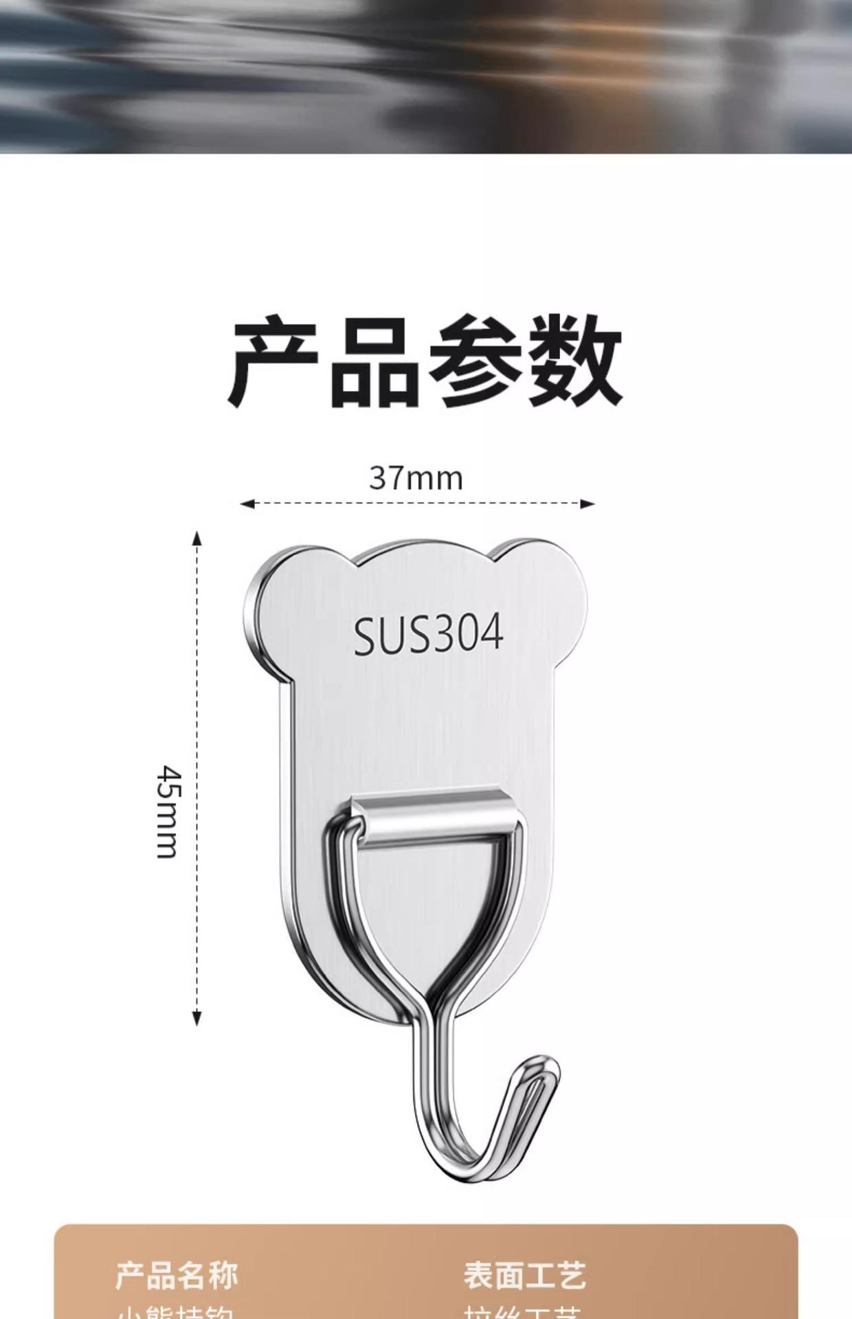 Gancho de acero inoxidable de fuerte carga, gancho adhesivo no perforado, gancho para toalla para colgar en la pared de baño, cocina, hogar, gancho para ropa para puerta