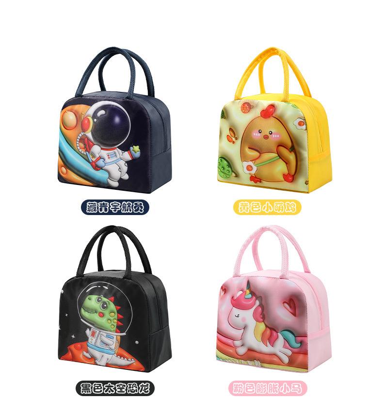 Bolsa de almuerzo para estudiantes, bolsa aislante con dibujos animados en 3D, bolsa aislante portátil para niños, bolsa de almuerzo de tela Oxford, linda bolsa de almuerzo