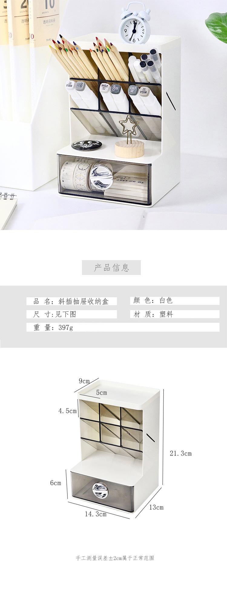 Portalápices oblicuo, caja de almacenamiento de papelería de escritorio para estudiantes, estante de almacenamiento de escritorio de oficina, caja de almacenamiento de artículos diversos y cosméticos