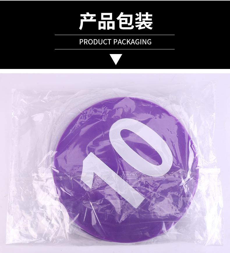 Diámetro 23cm, espesor 0.3cm Peso individual: 92g Peso del juego: alrededor de 940g