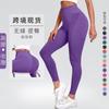 Pantalones deportivos de fitness transfronterizos, nuevos, de cintura alta, color melocotón, leggings abdominales ajustados sin costuras, pantalones de yoga abdominales