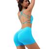 Conjunto de dos piezas de ropa de yoga transfronteriza europea y americana para mujer, sujetador deportivo, pantalones de yoga sin costuras que levantan la cadera y pantalones cortos deportivos.
