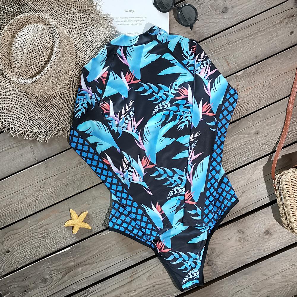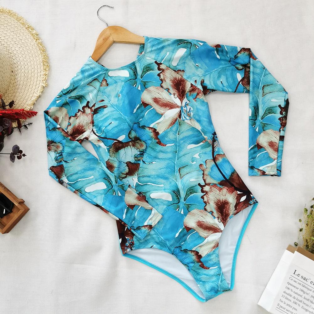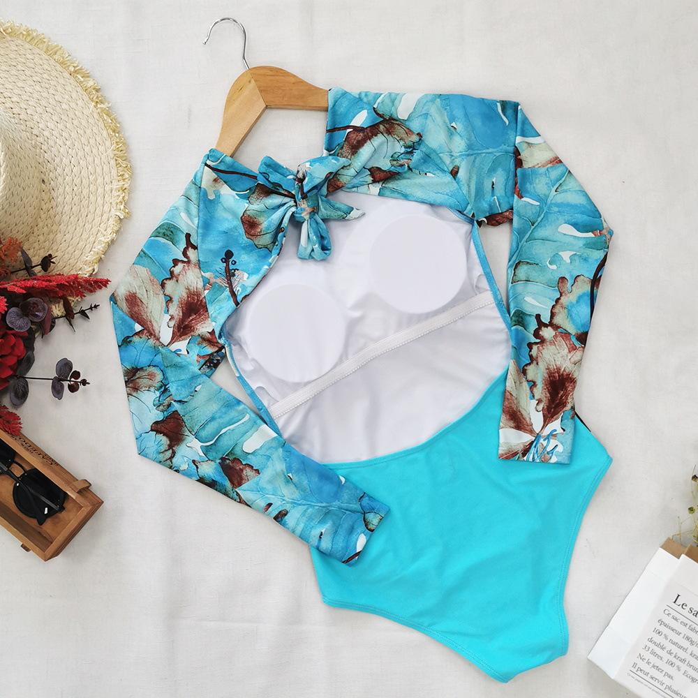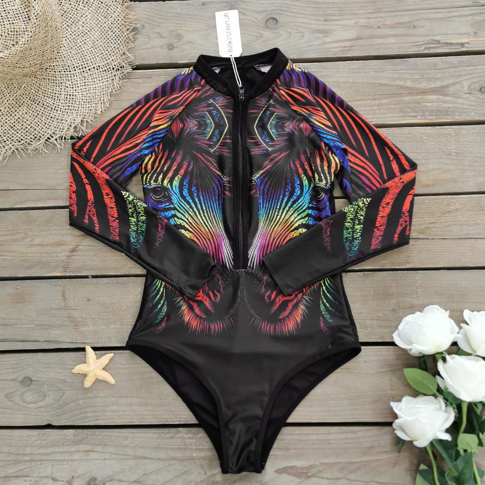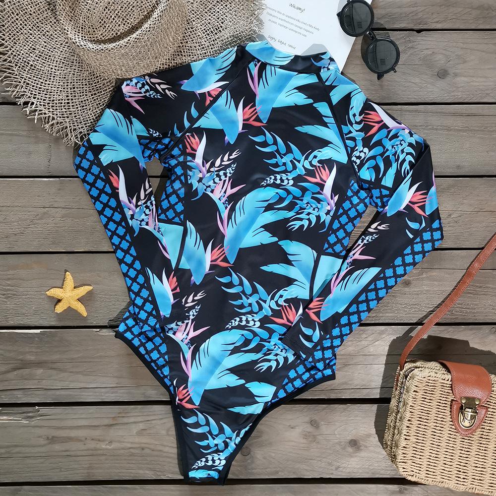 Traje de baño nuevo de una pieza para mujer 2025 sexy deportivo europeo y americano de manga larga estampado AliExpress comercio exterior transfronterizo traje de baño para surf