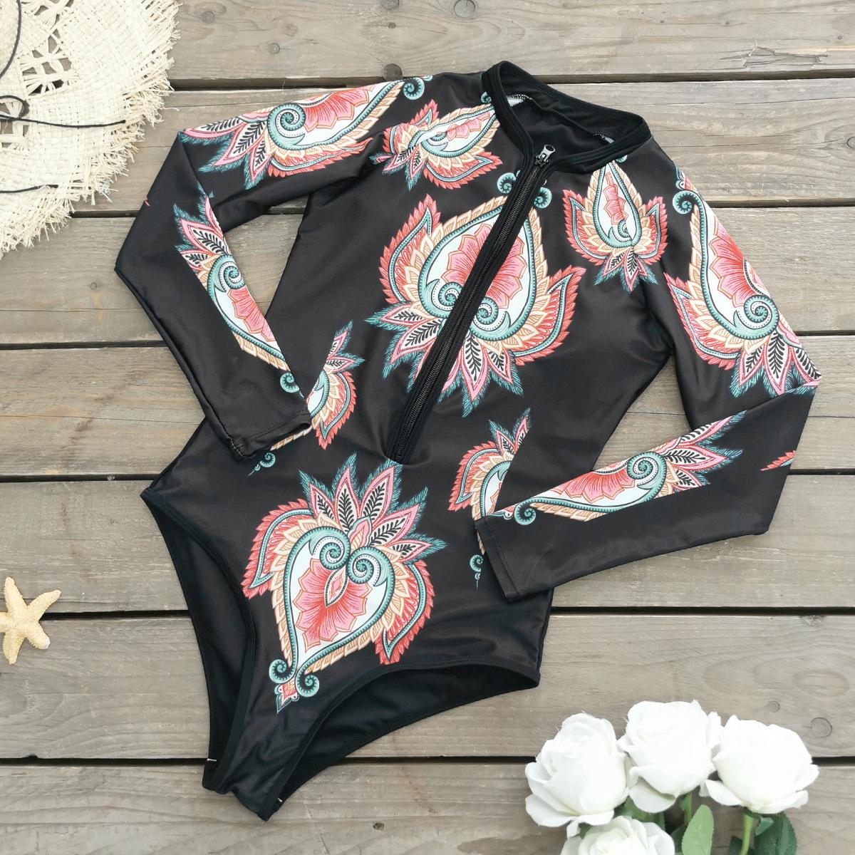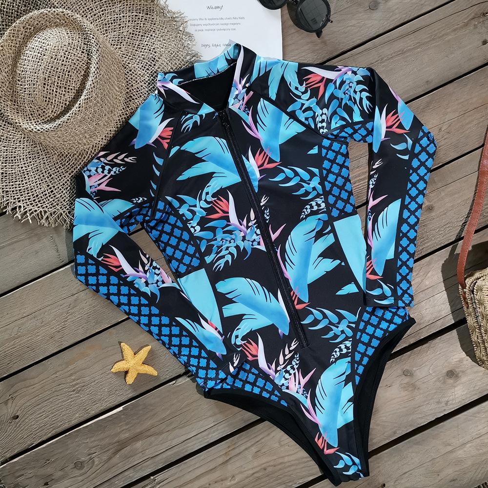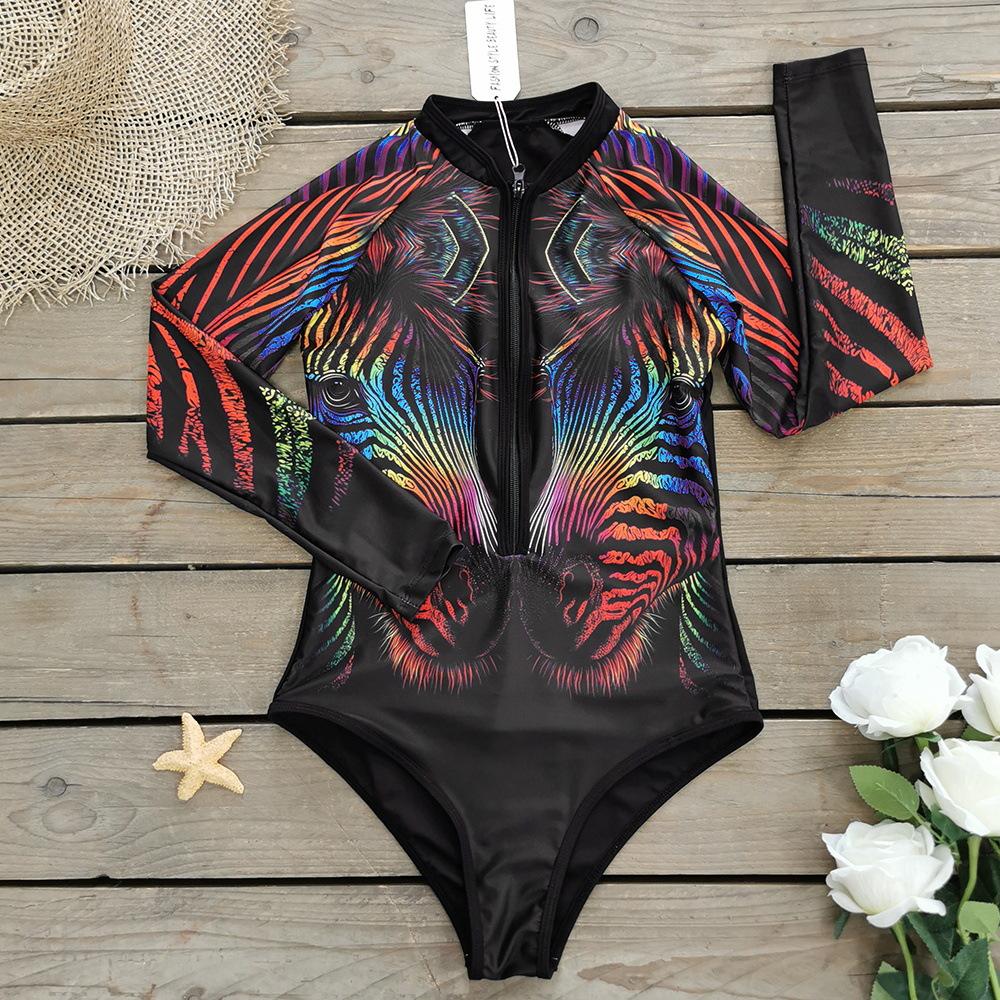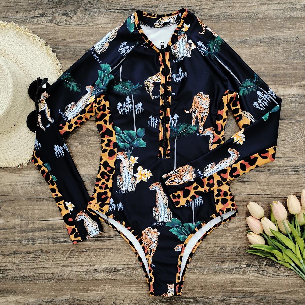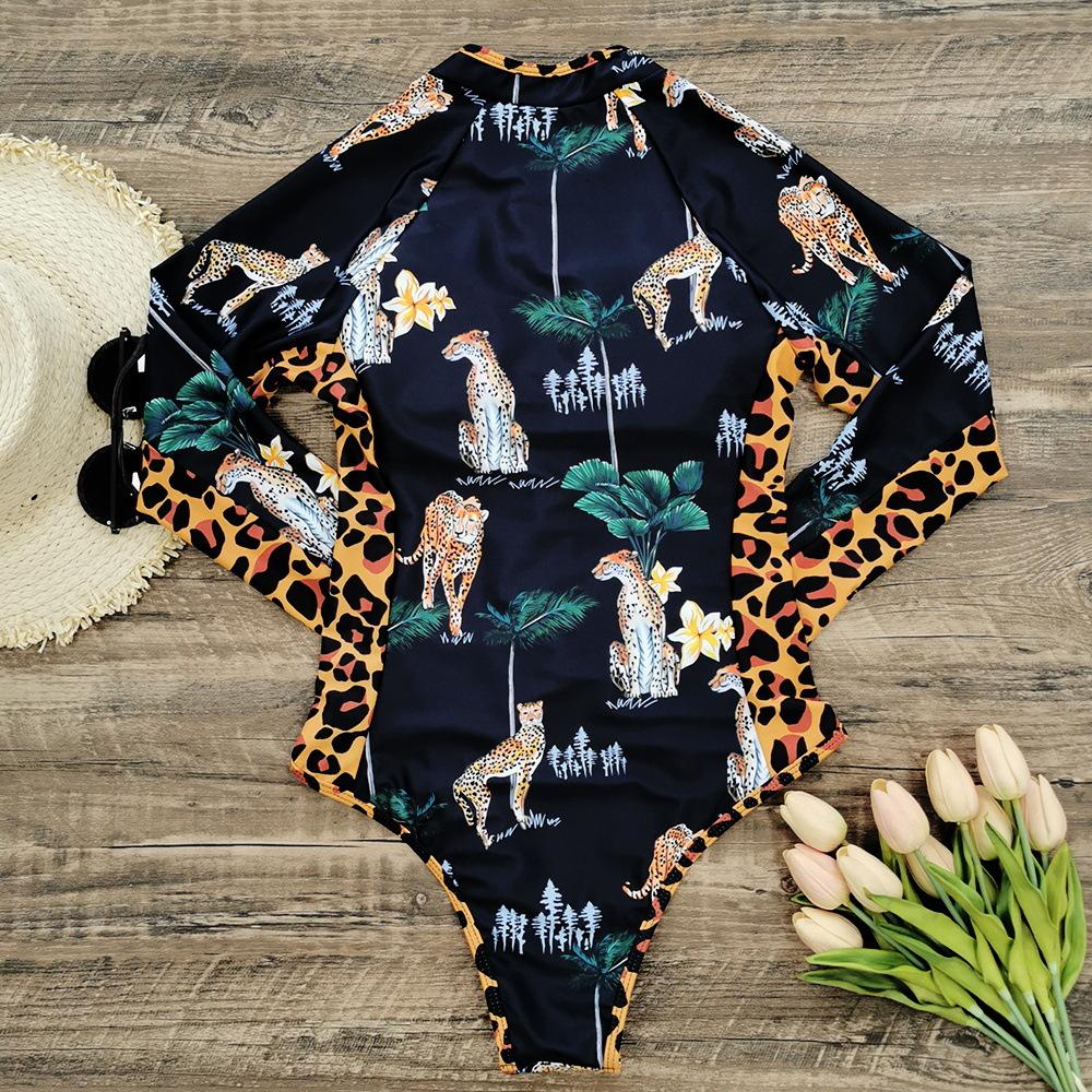 Traje de baño nuevo de una pieza para mujer 2025 sexy deportivo europeo y americano de manga larga estampado AliExpress comercio exterior transfronterizo traje de baño para surf