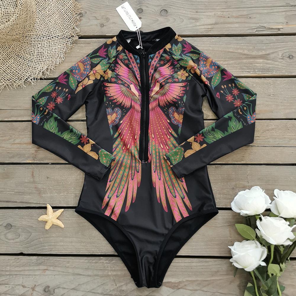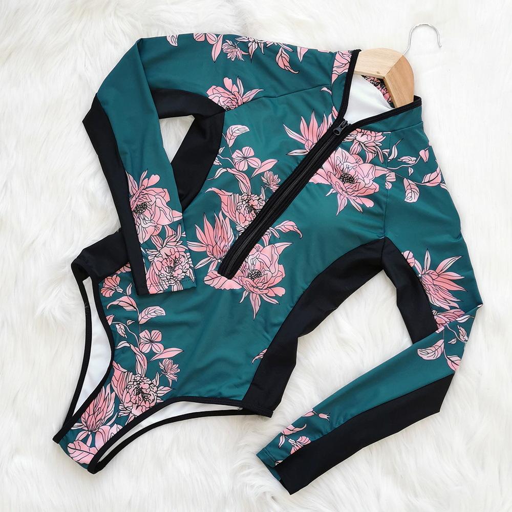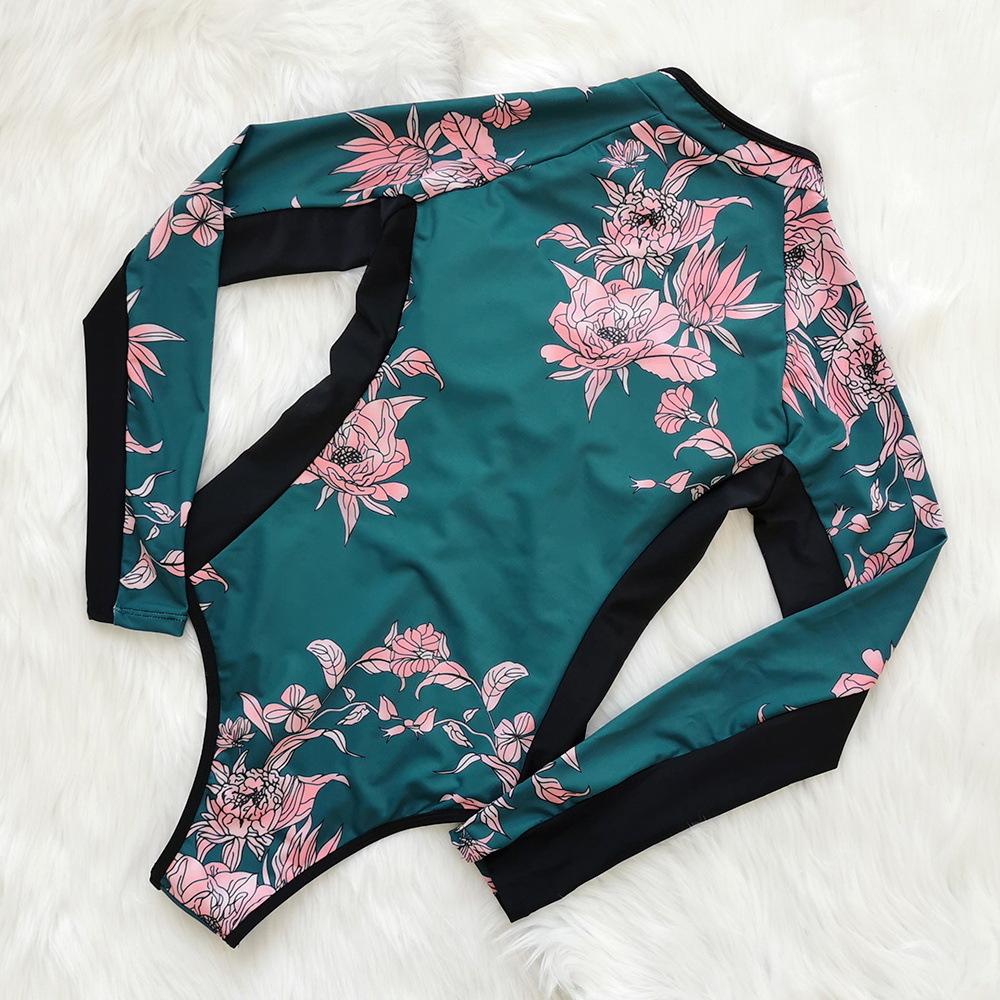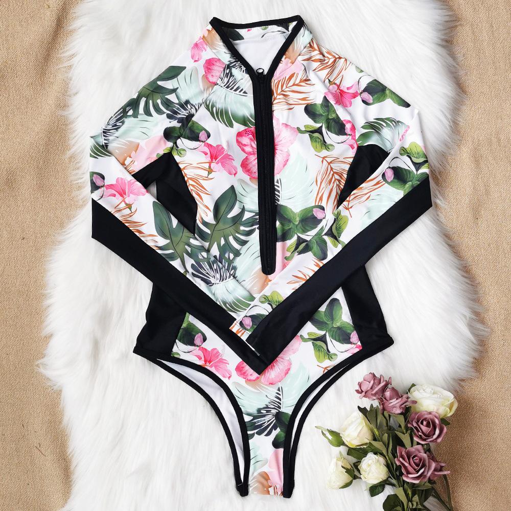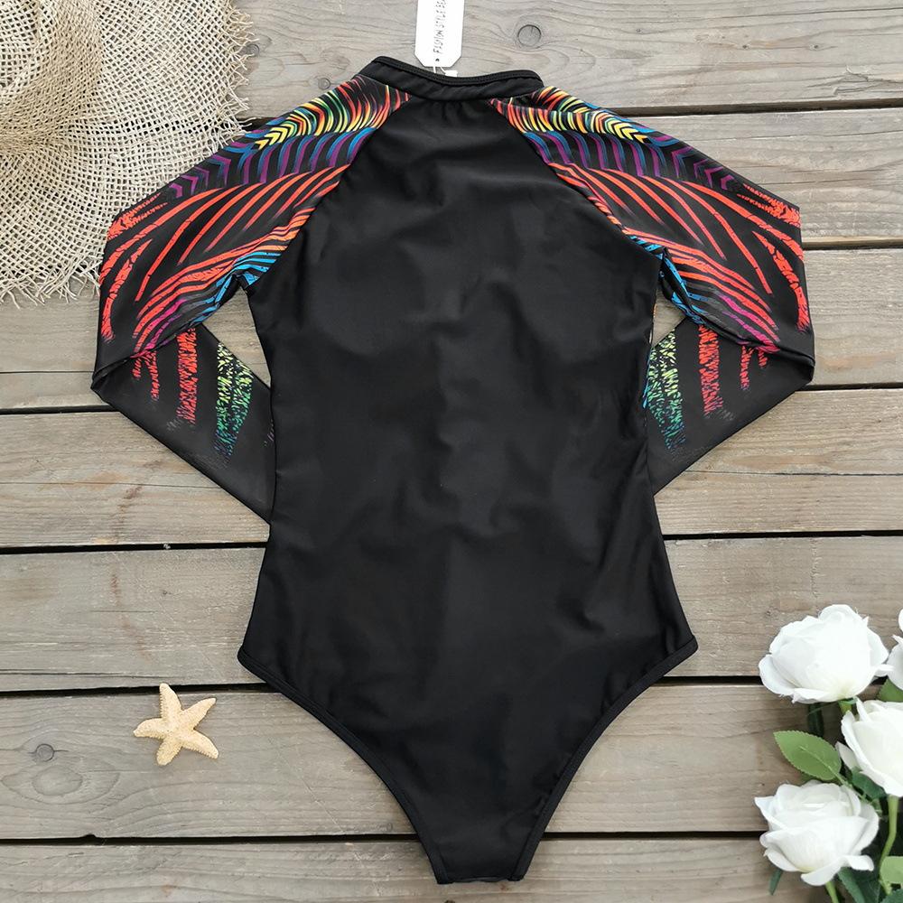 Traje de baño nuevo de una pieza para mujer 2025 sexy deportivo europeo y americano de manga larga estampado AliExpress comercio exterior transfronterizo traje de baño para surf