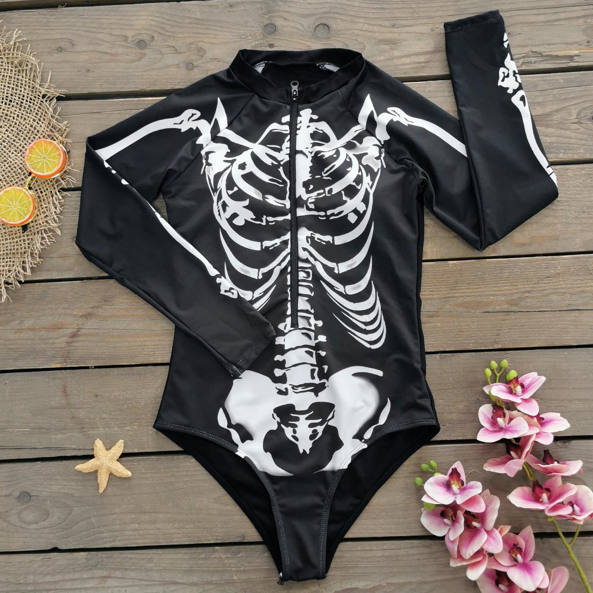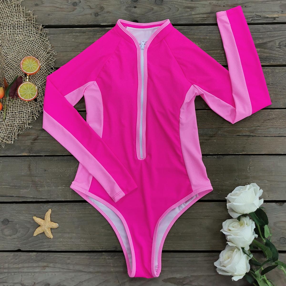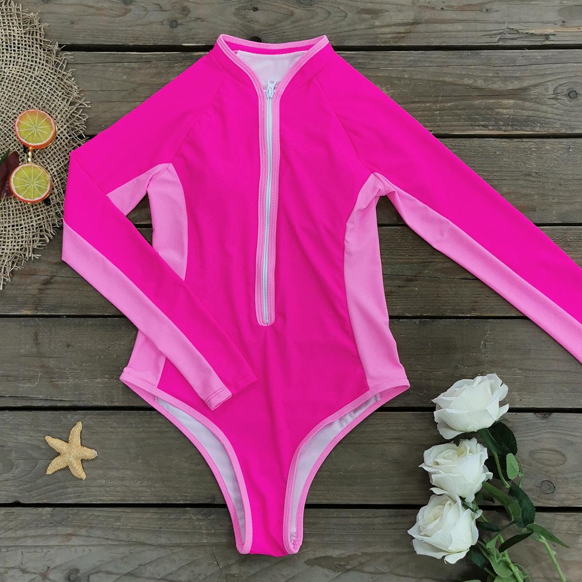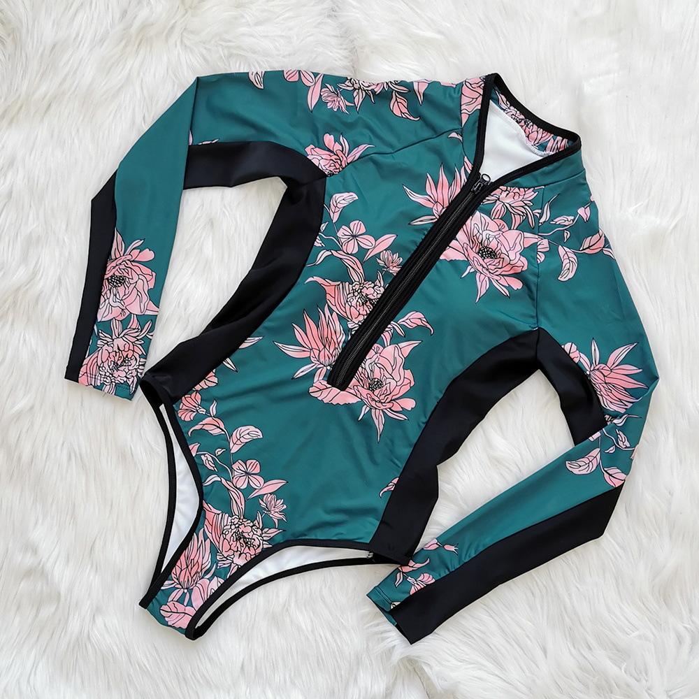 Traje de baño nuevo de una pieza para mujer 2025 sexy deportivo europeo y americano de manga larga estampado AliExpress comercio exterior transfronterizo traje de baño para surf