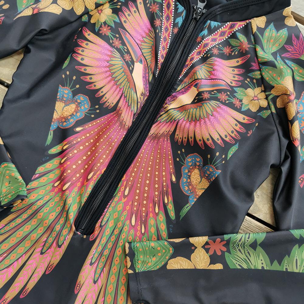 W1 white background print + black sleeves, B1 black background blue print, Dd black, R2 red bird print, G2 gre...