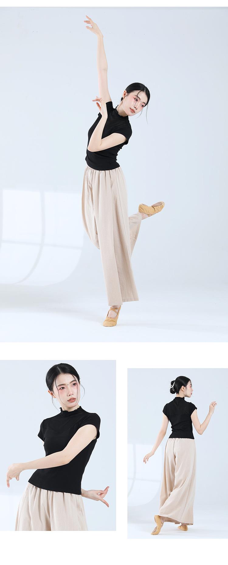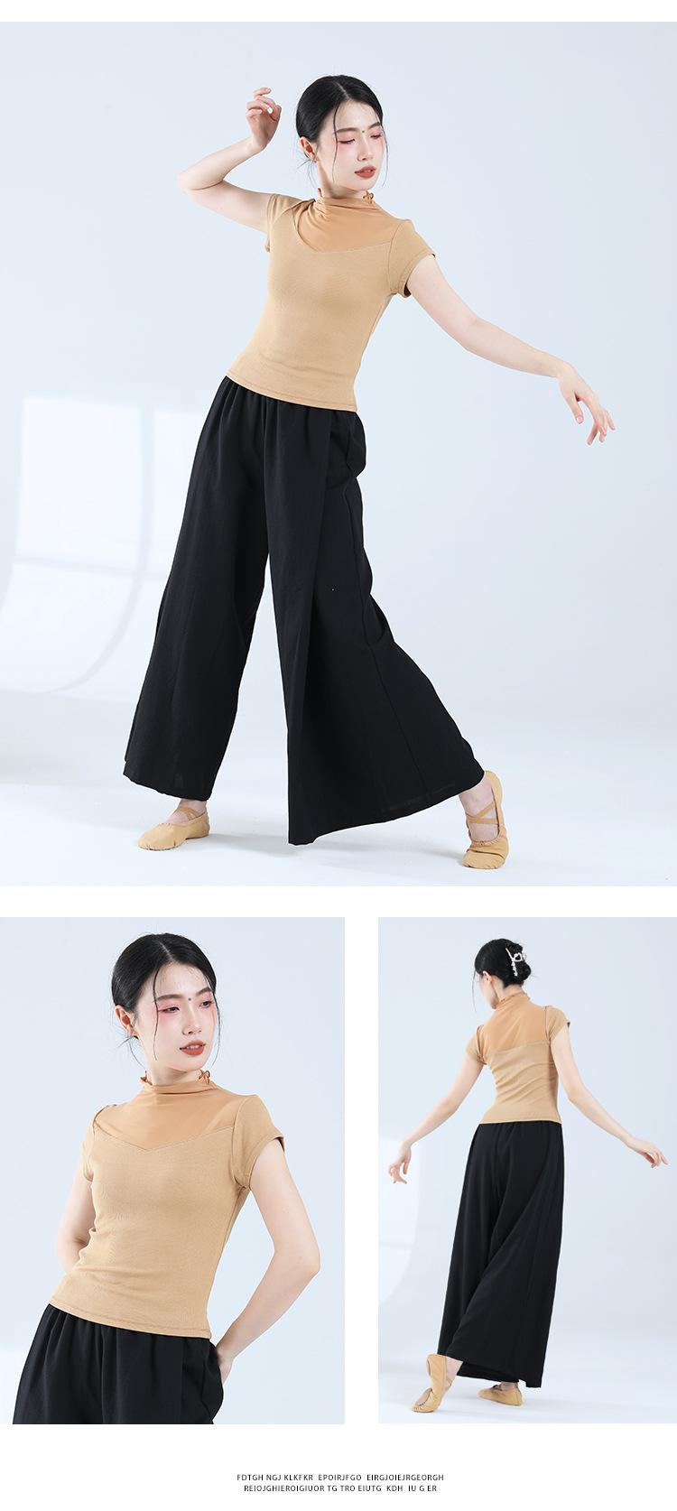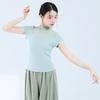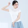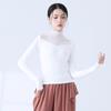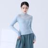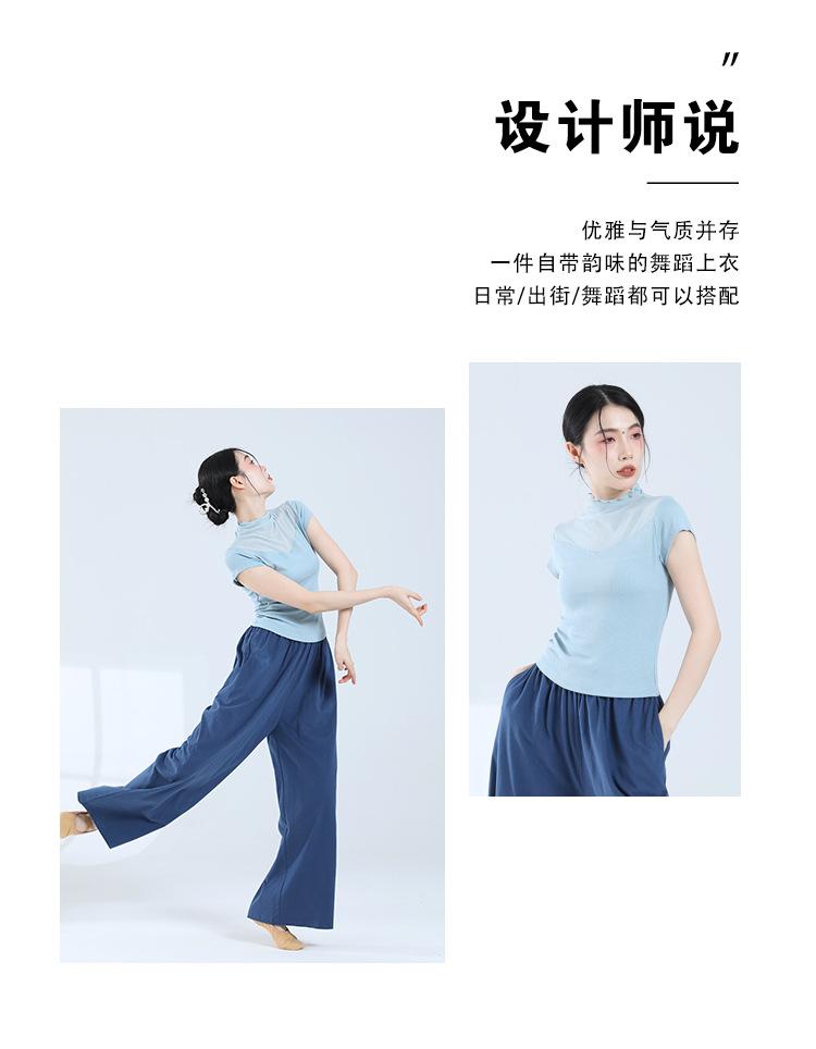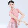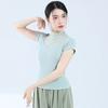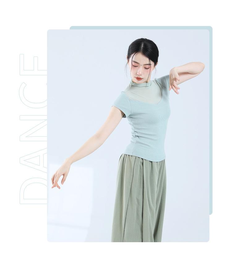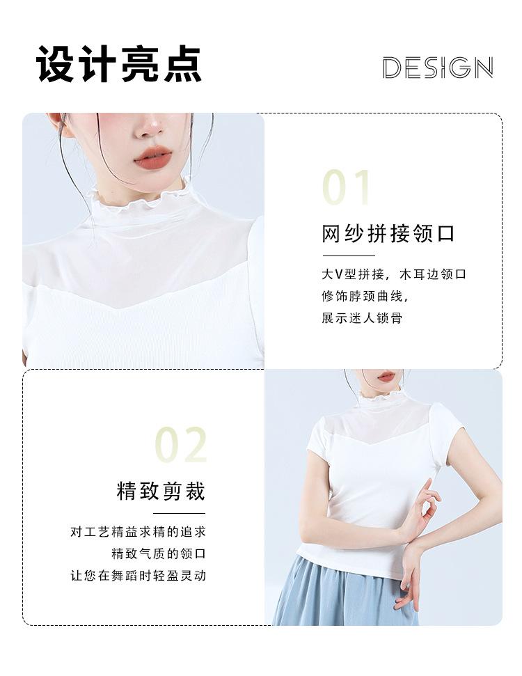 Tops para Adulto Ropa de Práctica de Danza Moderna Ajustada Manga Corta Malla Cuello Alto Danza Clásica China Ropa de Danza Étnica para Mujer