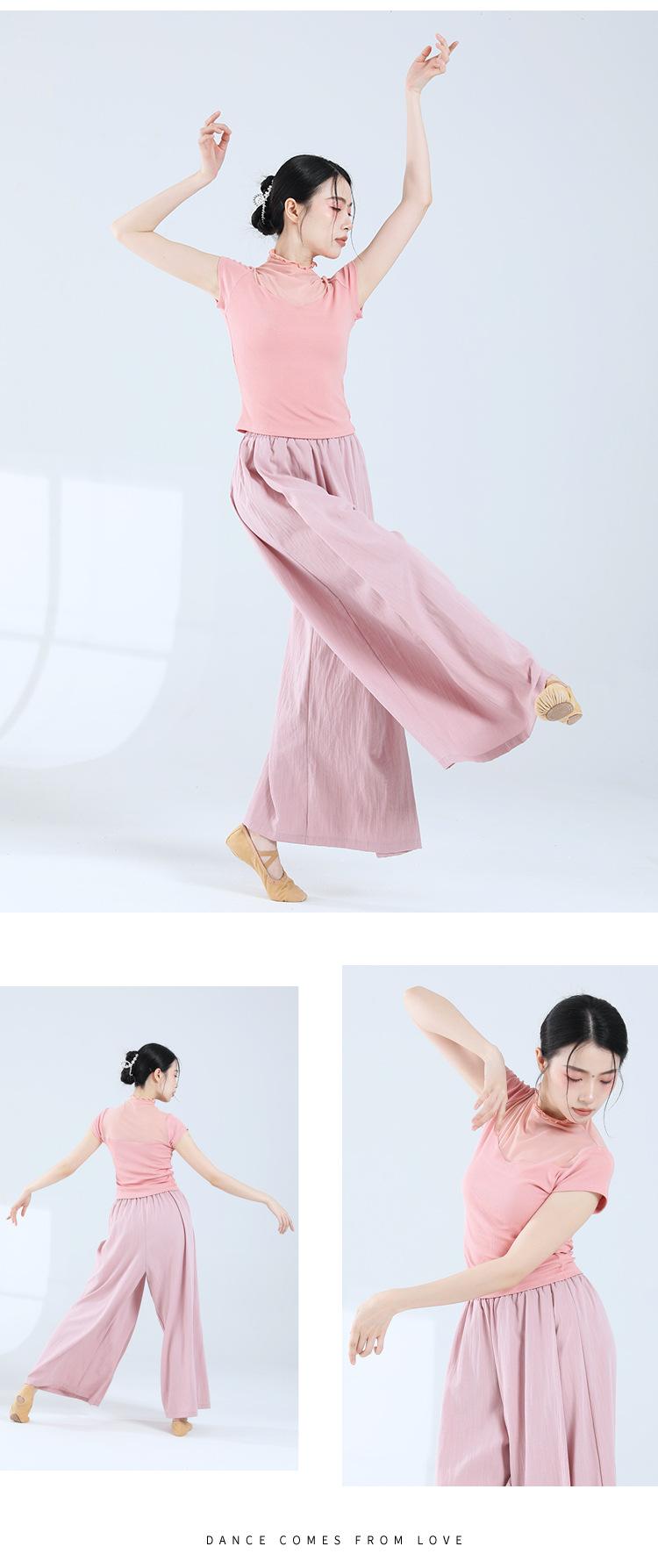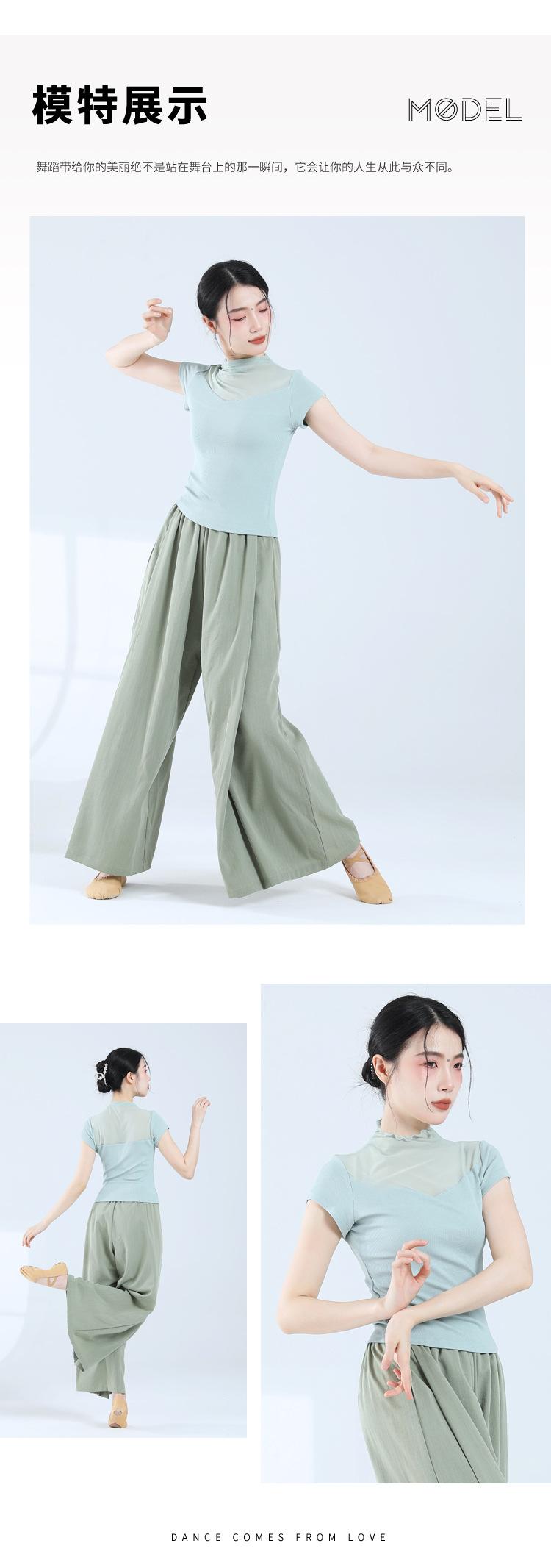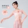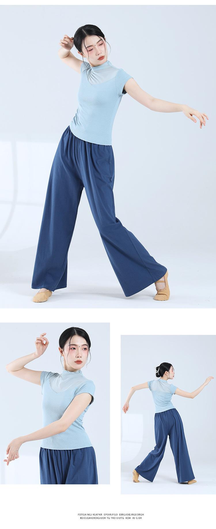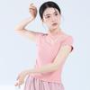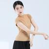 Tops para Adulto Ropa de Práctica de Danza Moderna Ajustada Manga Corta Malla Cuello Alto Danza Clásica China Ropa de Danza Étnica para Mujer