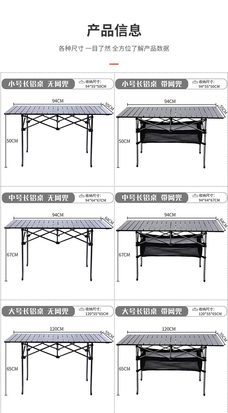 Small size long aluminum table-without net pocket, Small size long aluminum table-with net pocket, Medium long...