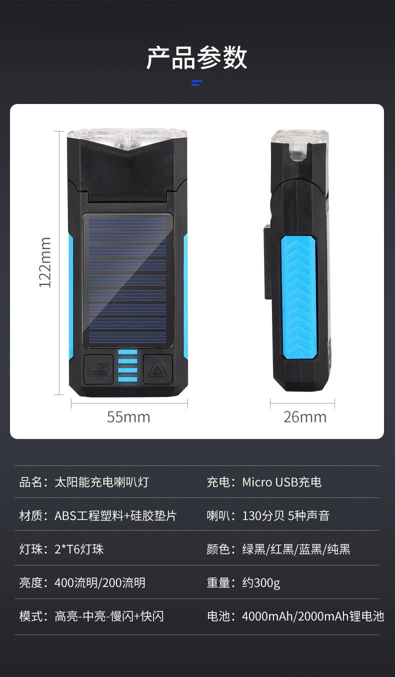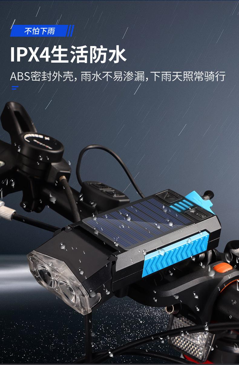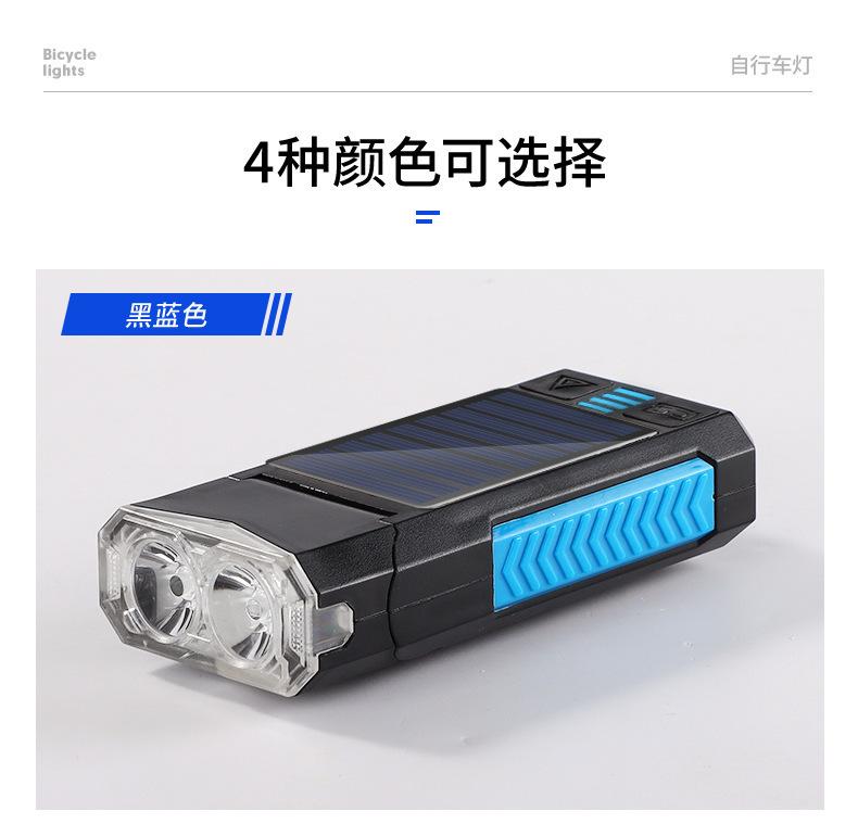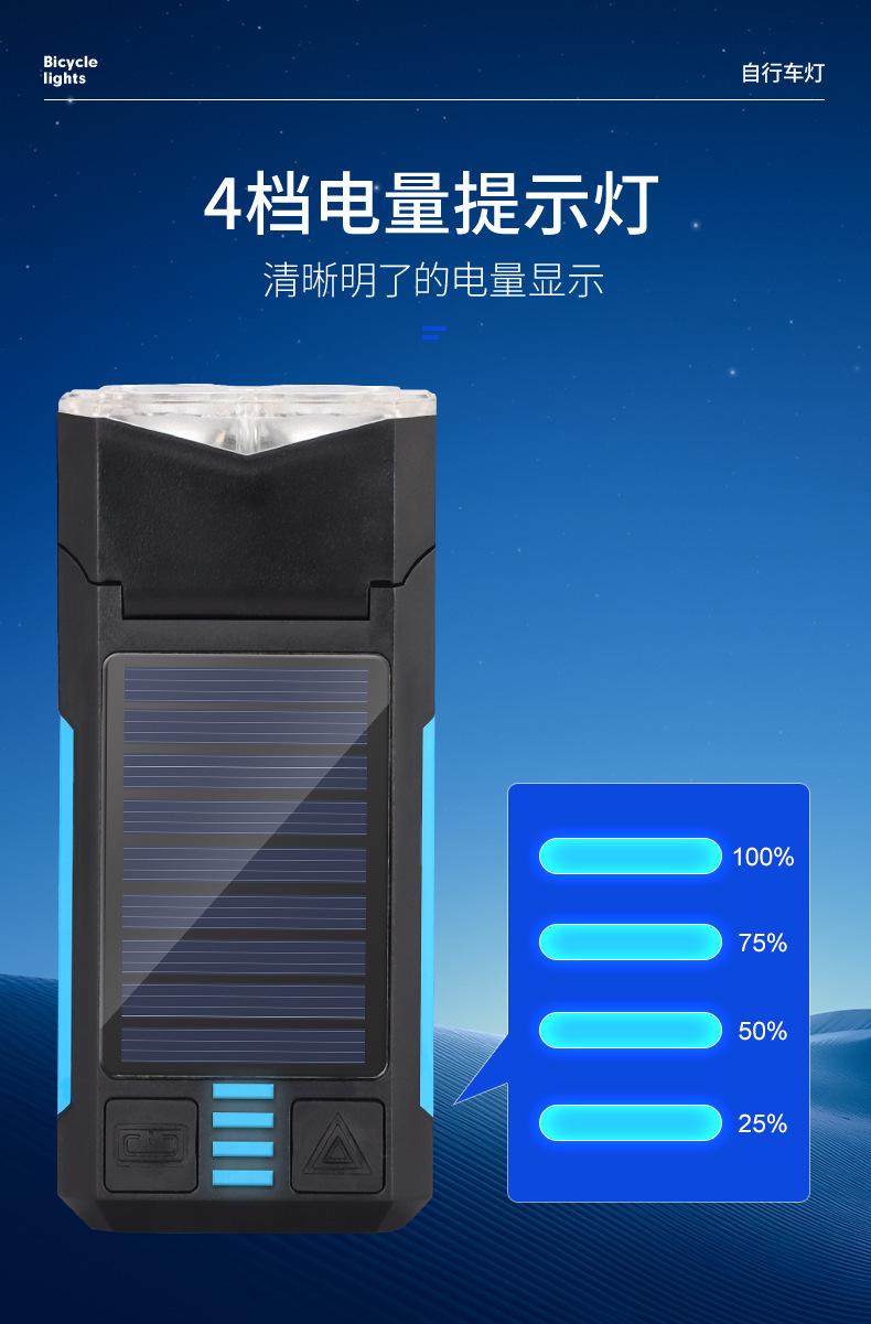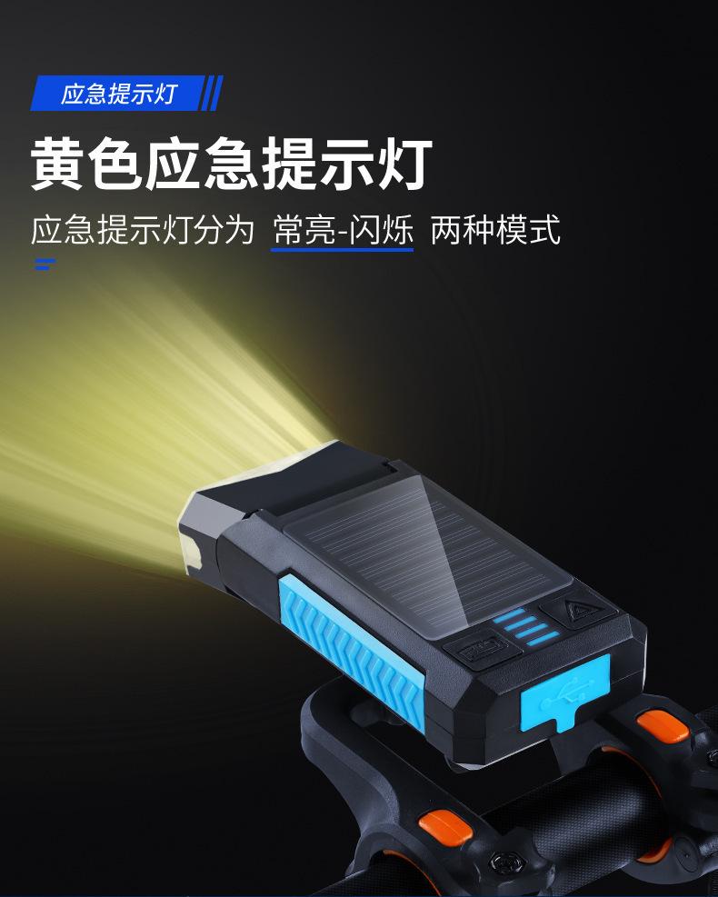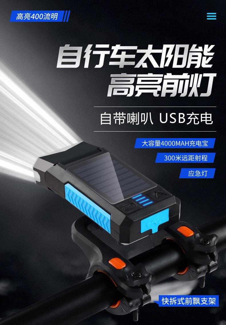 Faro delantero para bicicleta de montaña con luz potente USB transfronteriza, luz de ciclismo con bocina, luz solar para bicicleta