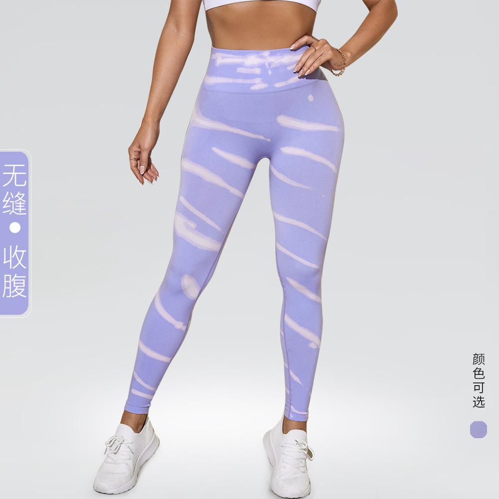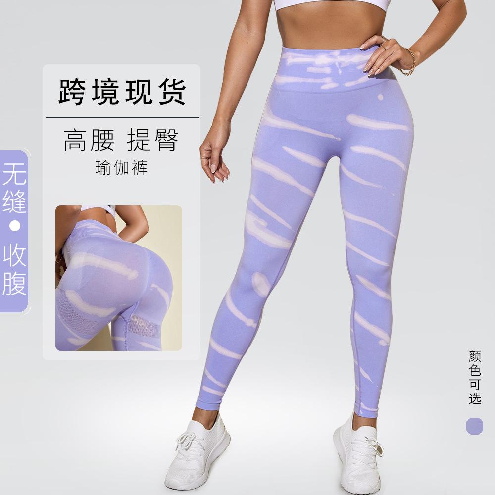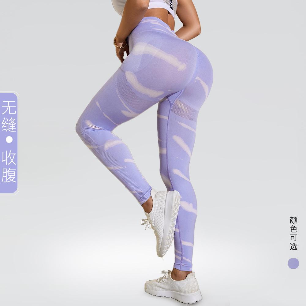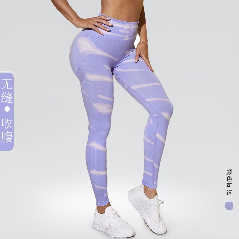 Pantalones de Yoga de Otoño Sin Costuras Tie-Dye Nude para Mujer Europea y Americana para Exterior Yoga Fitness Pantalones Deportivos Nueve Puntos para Mujer