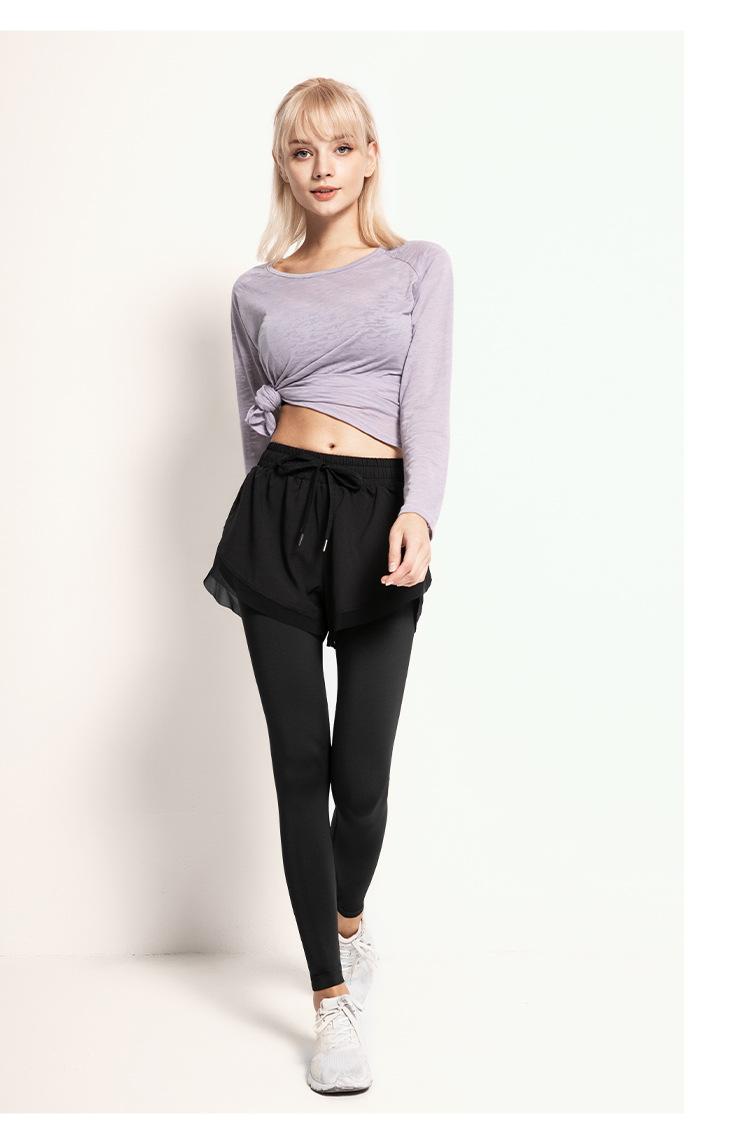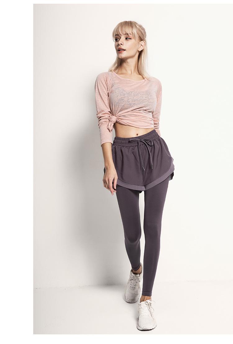 Nuevos Pantalones de Yoga Slim de Dos Piezas Falsas Pantalones Deportivos de Primavera y Otoño Pantalones de Running Fitness para Mujer Pantalones de Yoga Ajustados Elásticos para Mujer
