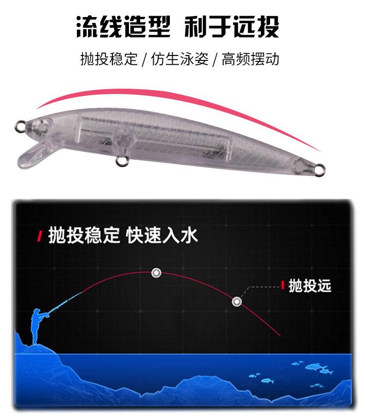 Cebo Luya caliente de comercio exterior cebo flotante de agua biónico con cuentas de anillo señuelo pez lanzamiento largo plástico sin pintar plástico cuerpo embrionario de cebo duro
