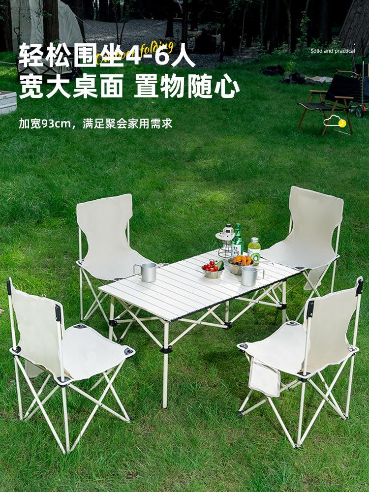 Mesa de camping al aire libre, portátil, plegable, informal, con rollo de huevo y silla, mesa de picnic, juego de mesa de picnic
