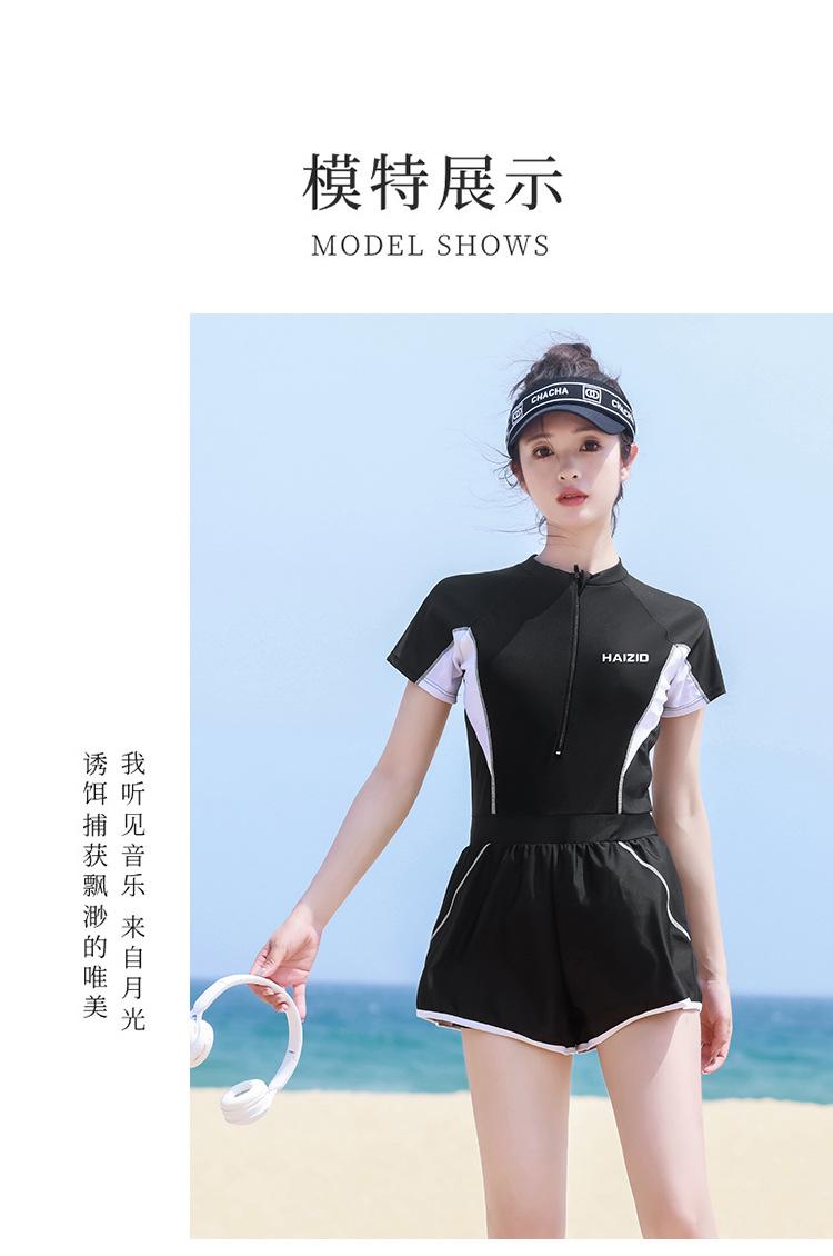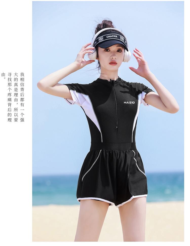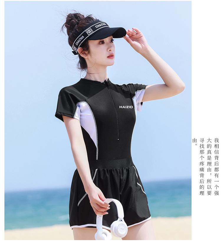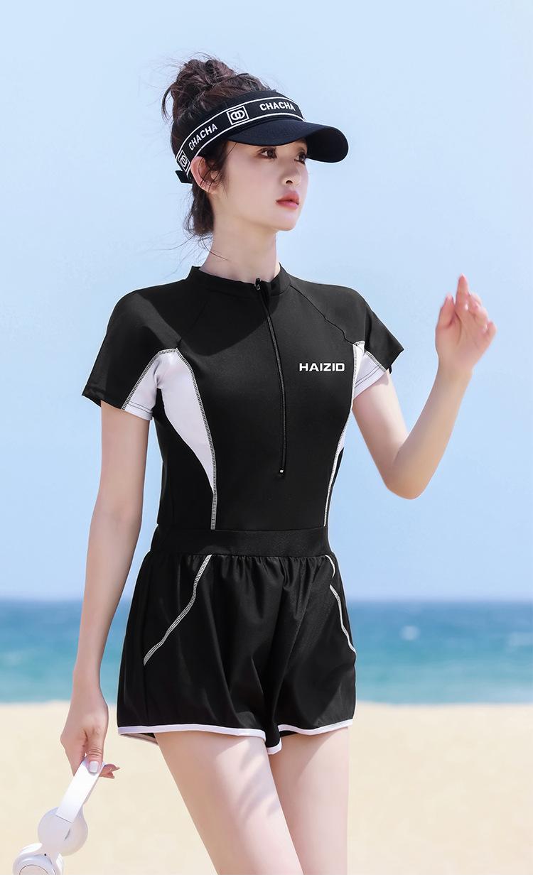 Traje de baño para mujer 2024, nuevo estilo, traje de baño adelgazante que cubre el vientre, traje de baño de una pieza conservador de manga larga, traje de baño de manga corta de aguas termales al por mayor