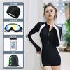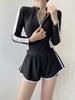Traje de baño coreano femenino sexy de manga larga para parque acuático, piscina, traje de baño conservador, traje de baño delgado con cobertura de vientre para niñas con almohadillas para el pecho