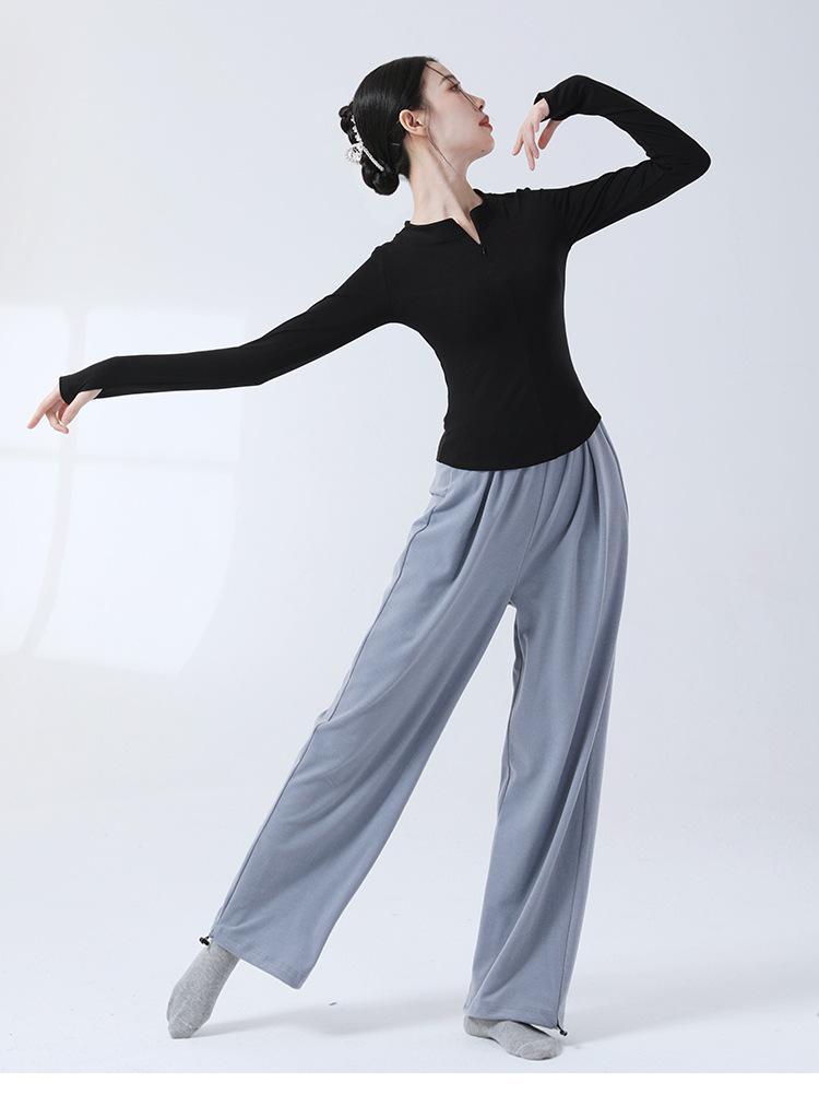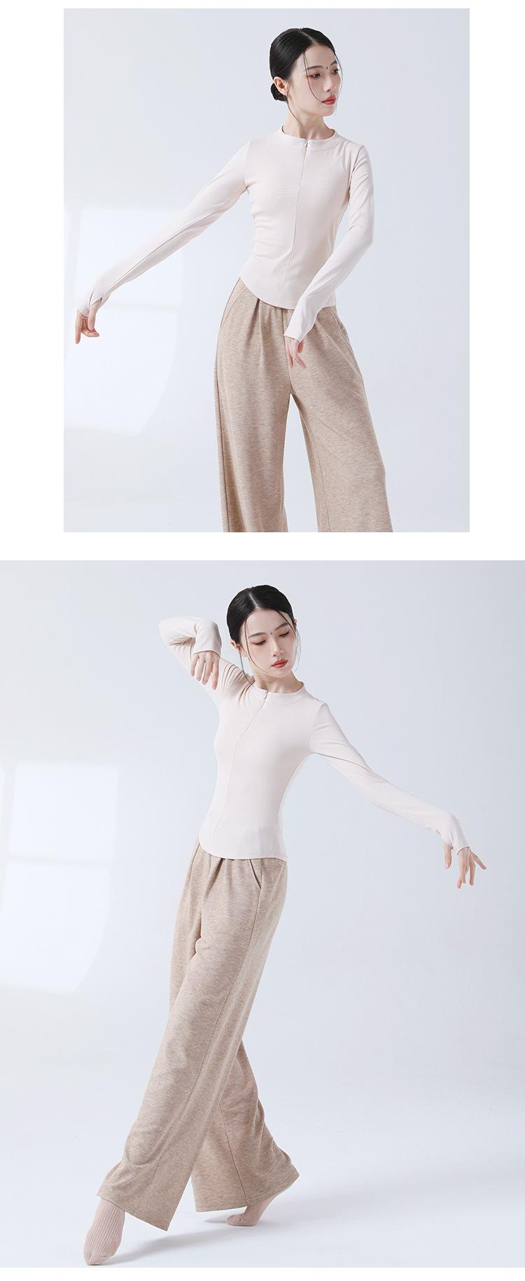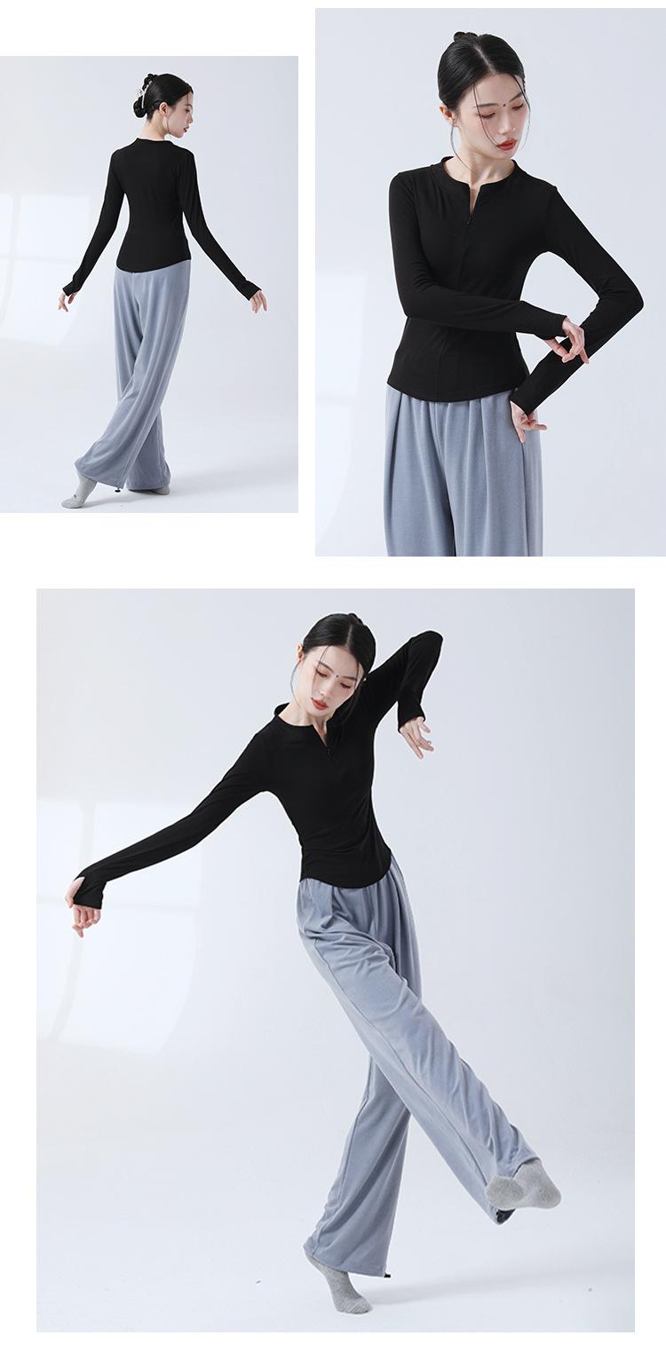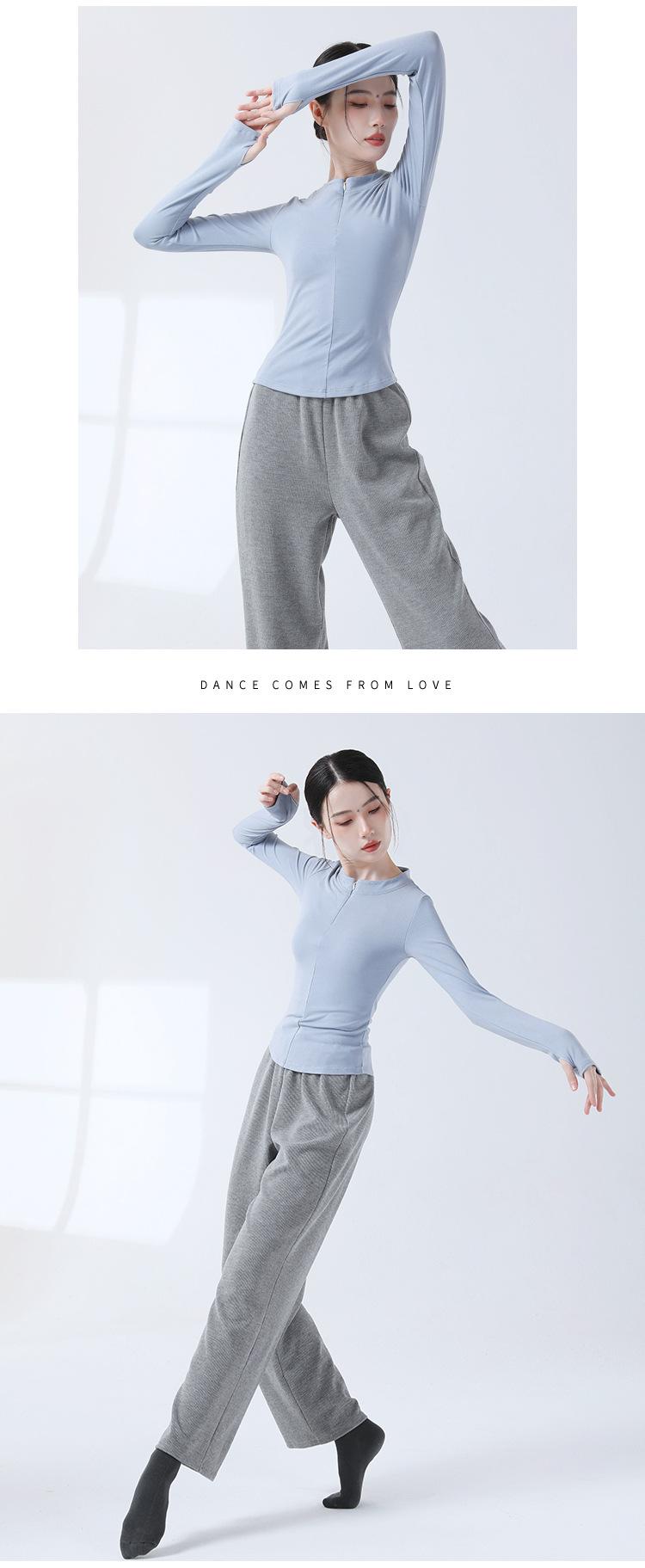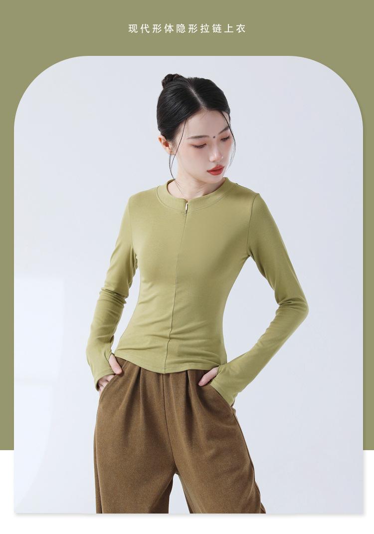 Top de Punto de Manga Larga con Cuello en V, Ajustado, con Cierre de Cremallera para Danza Moderna, Práctica de Danza Clásica, Uso Diario, Traje de Cuerpo para Mujer