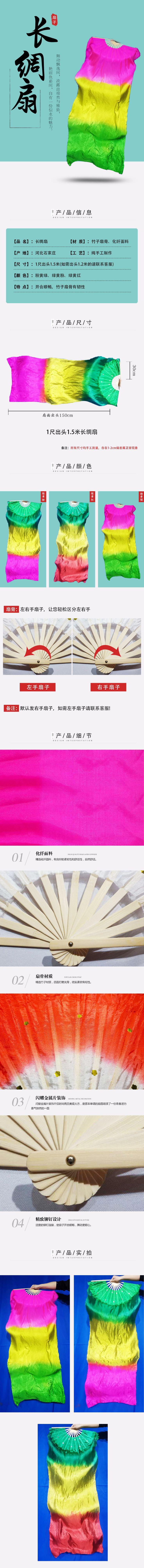 Abanico de Danza Yangko de Doble Cara de 1.5 m de Largo Abanico de Seda Abanico de Danza de Tres Colores Abanico de Danza Cuadrada Yangko Trenzado Venta al por Mayor