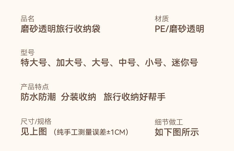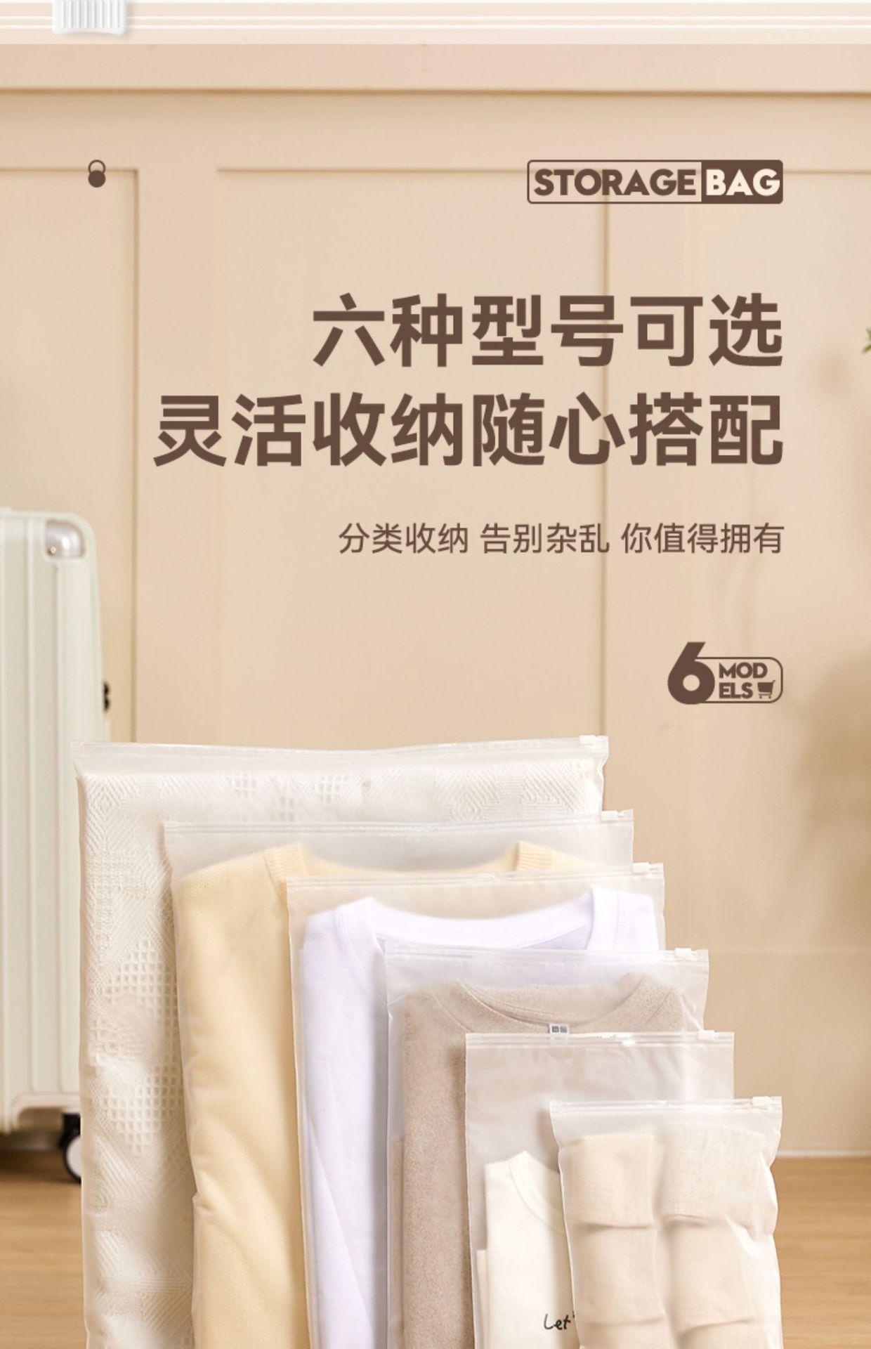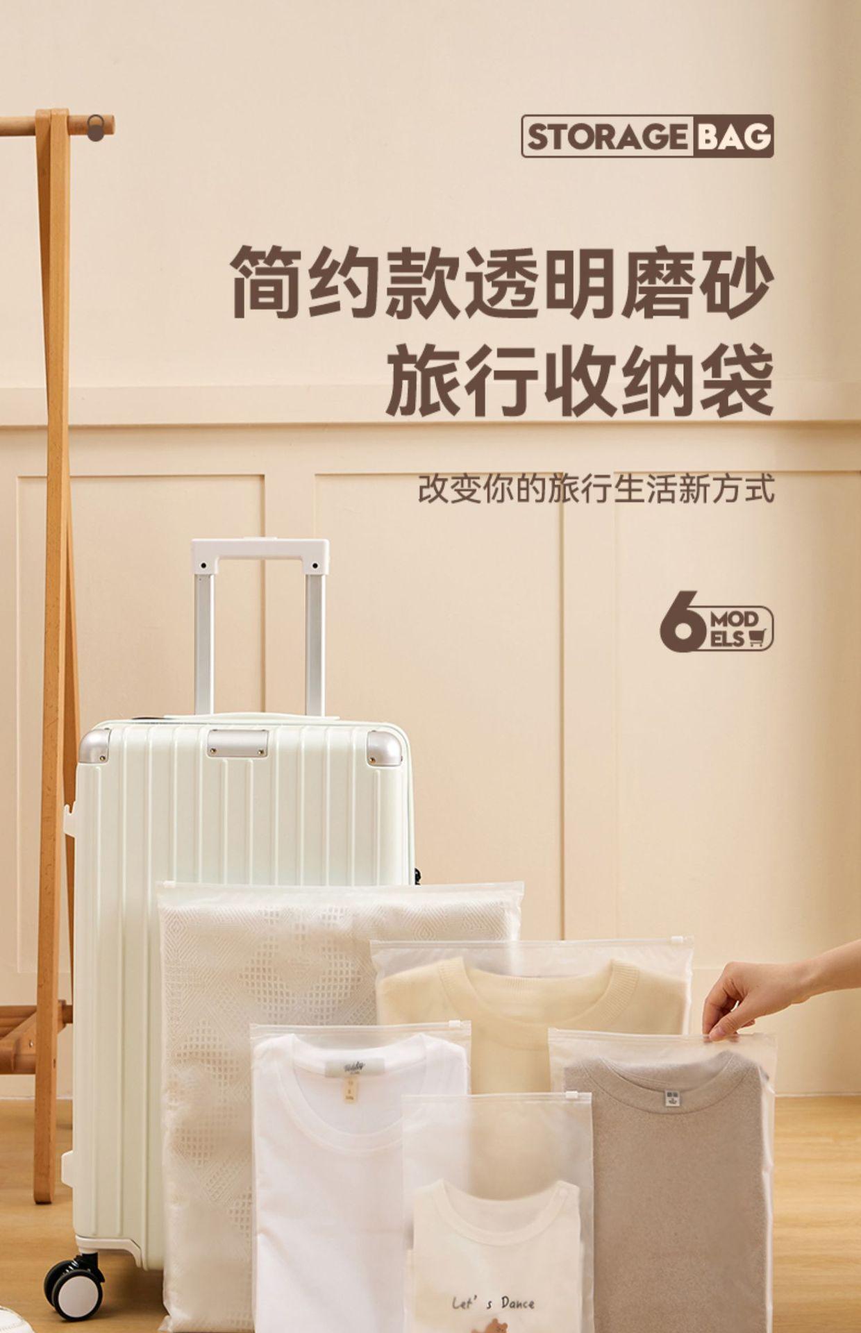 Bolsa de almacenamiento de viaje de PE engrosada para ropa, zapatos, transparente, impermeable, portátil, juego de seis piezas