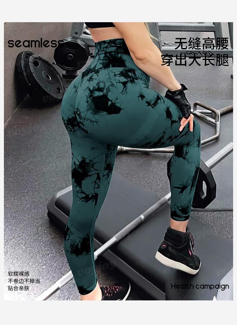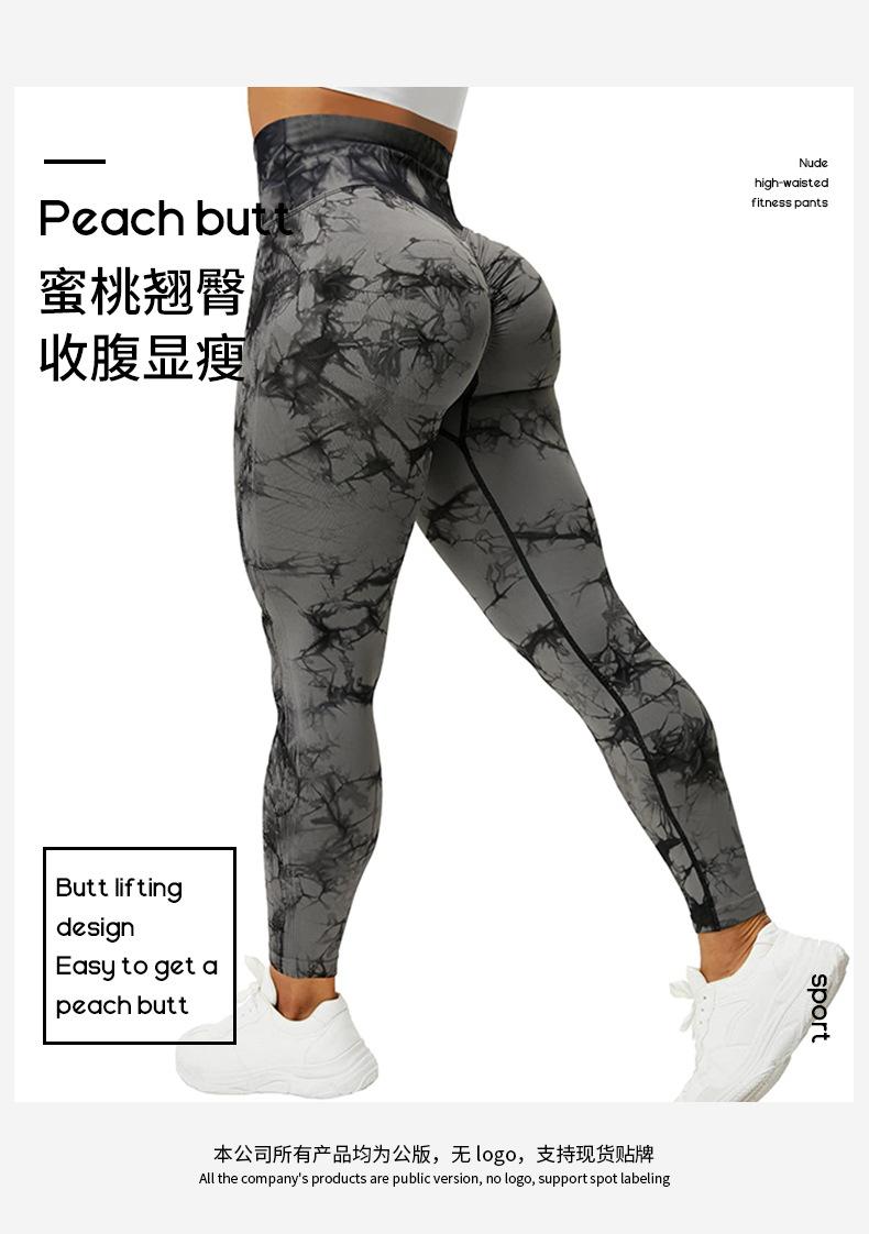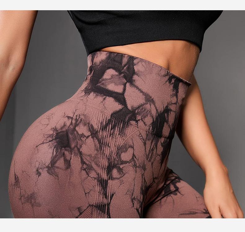 Pantalones de Fitness Tie-Dye de Melocotón Gruesos Nuevos de Baoshun de Cintura Alta Deportivos Sin Costuras Europeos y Americanos Pantalones de Yoga Pantalones de Trasero Hermoso