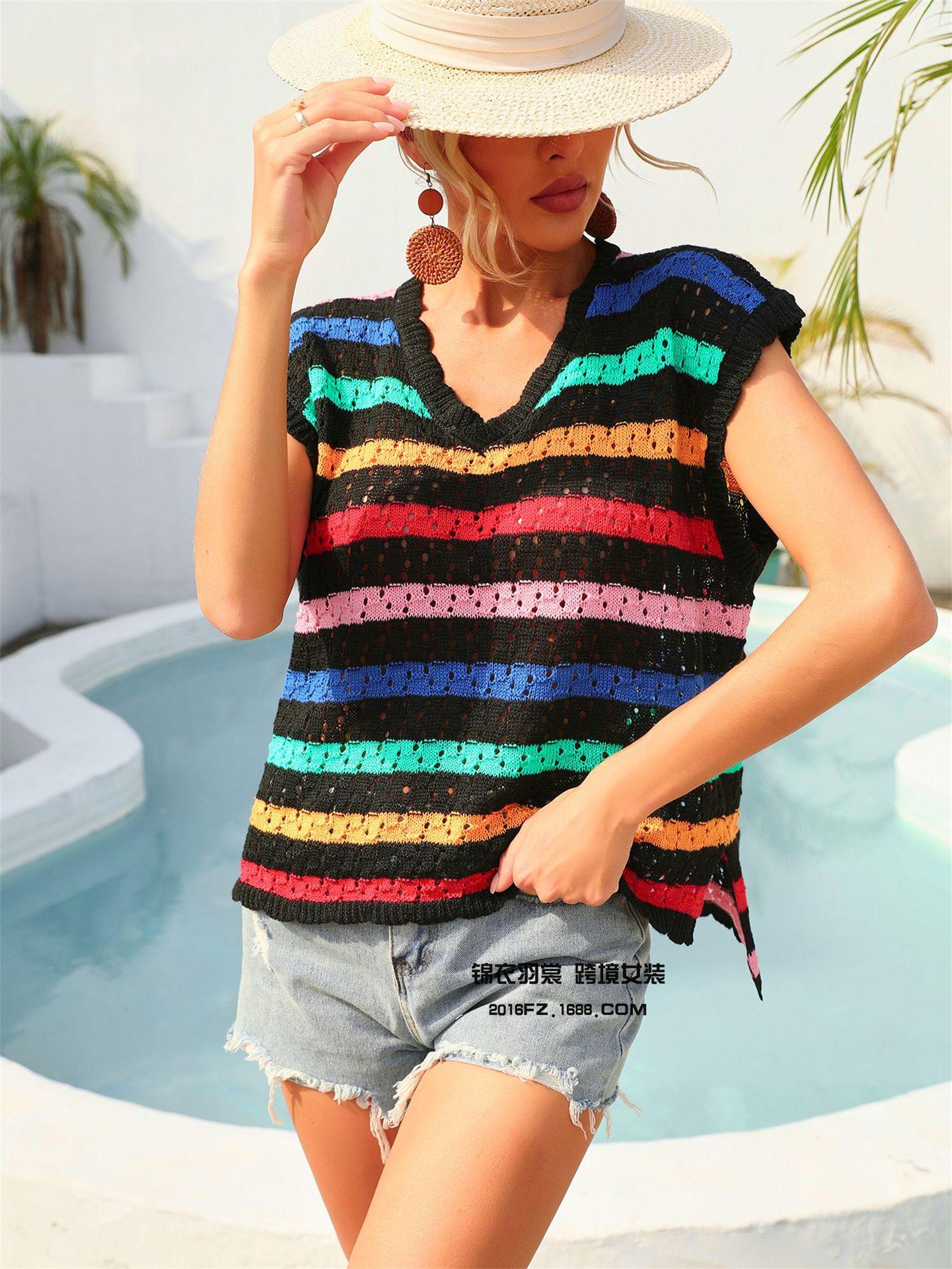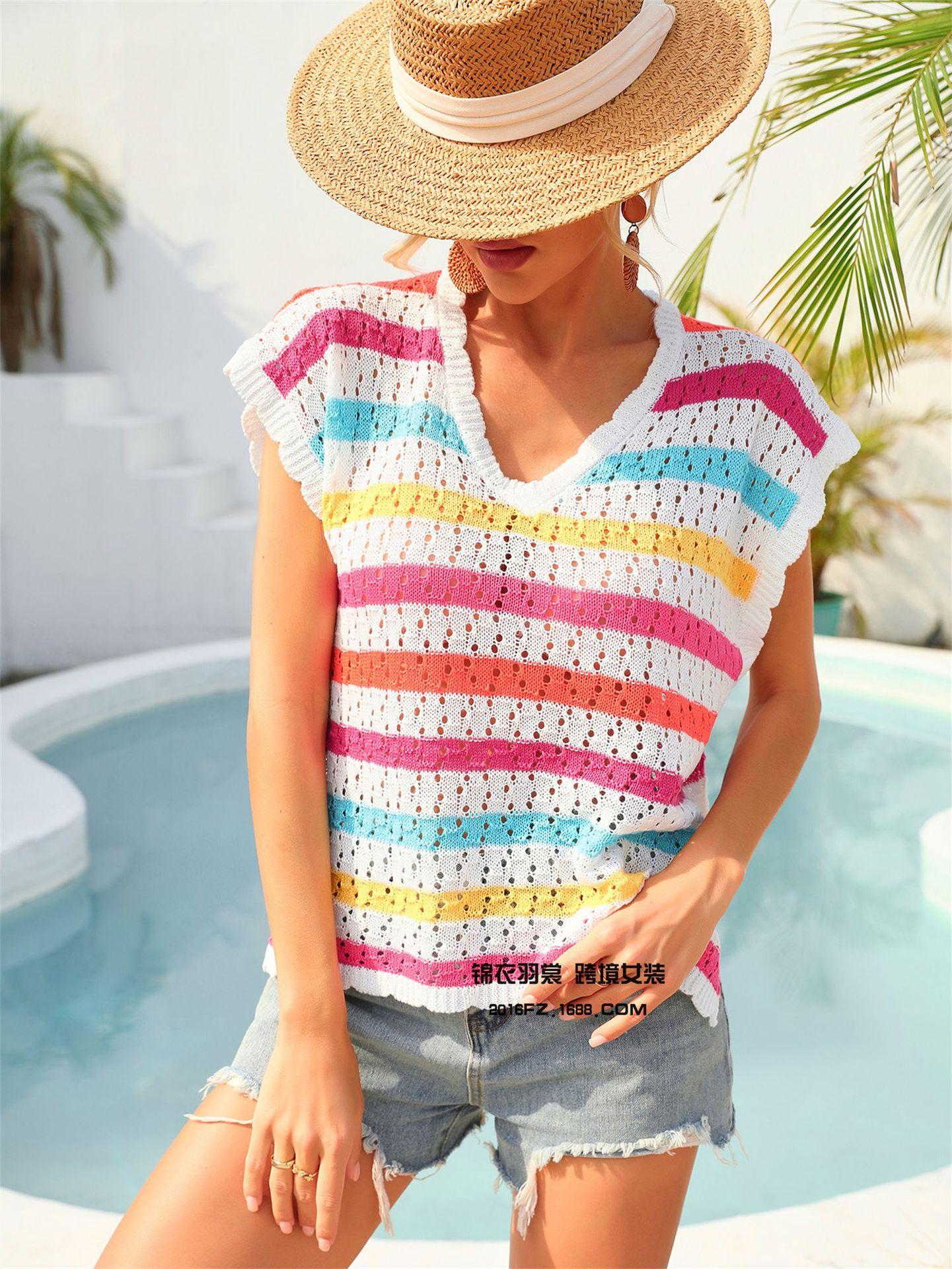 2025 Nuevo Producto de Verano Amazon Cubreplaya Tipo Chaleco Bikini Tejido Vacacional Cubreplaya Camisa Protección Solar para la Playa